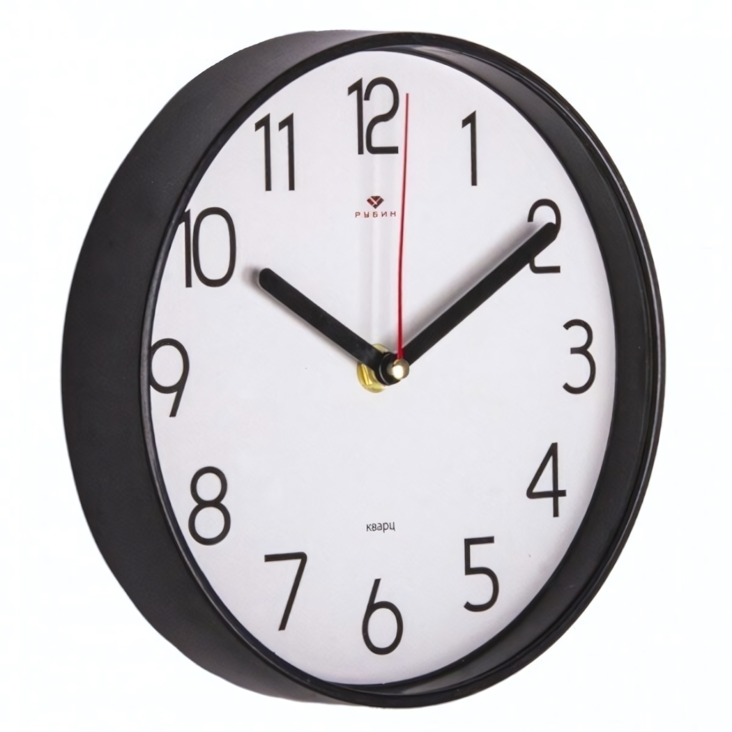 Белый циферблат с чёткими чёрными цифрами обеспечивает быструю читаемость, а контрастные стрелки – чёрные часы и красная секунда – подчёркивают функциональность дизайна. Подойдут как для гостиной, так и для кабинета, кухни или спальни.