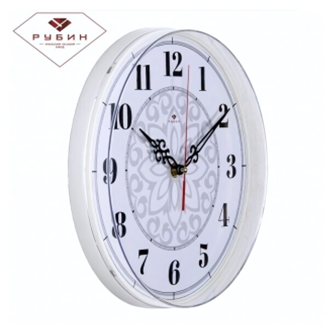 Эти круглые настенные часы диаметром 25 см с белым основанием и утончённым орнаментальным узором «Рубин» станут гармоничным акцентом в вашем доме или офисе. Мягкая цветовая гамма и аккуратный дизайн придают изделию универсальность — оно будет уместно в классическом, современном или минималистичном интерьере.