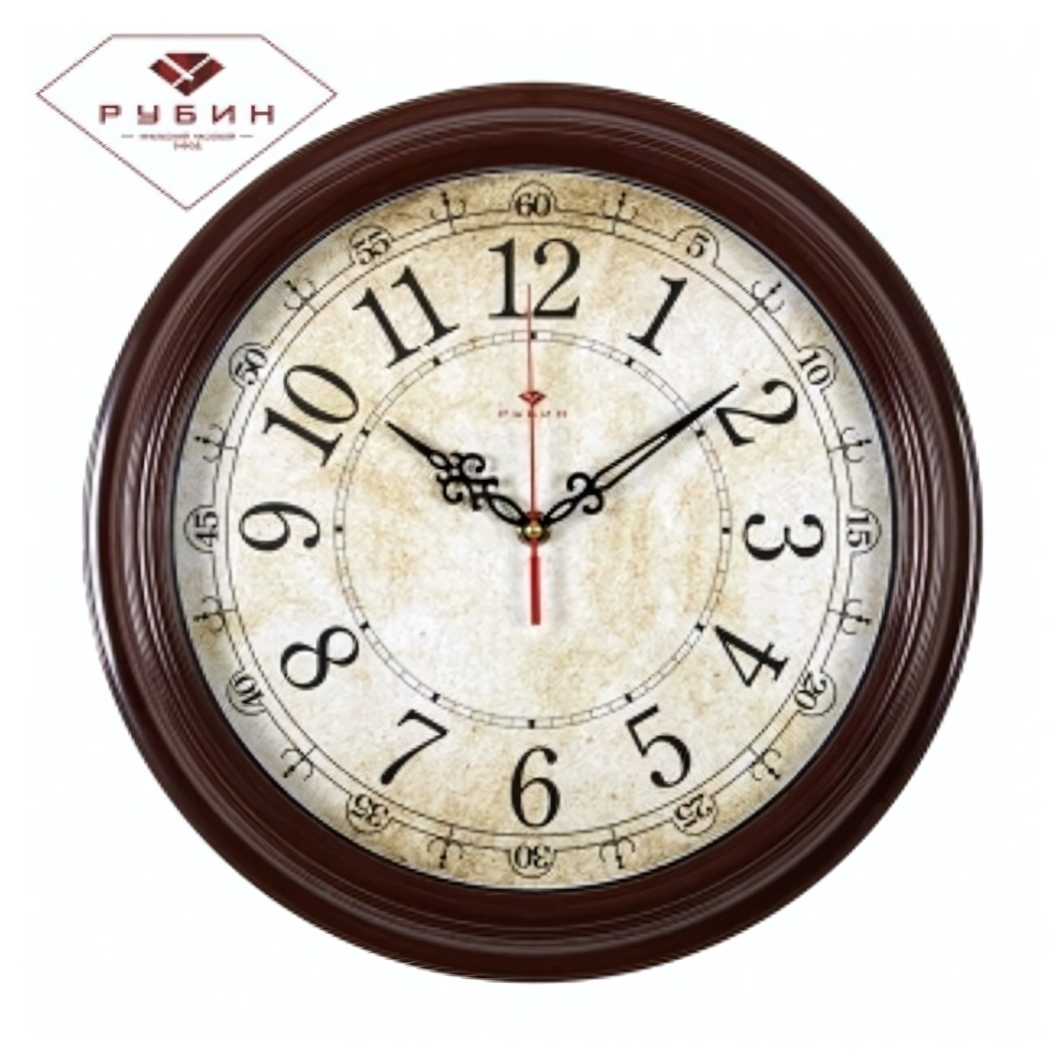 Эти настенные часы станут идеальным дополнением для классического или ретро-интерьера. Коричневый глянцевый корпус и стильный циферблат с арабскими цифрами создают атмосферу уюта и надежности.