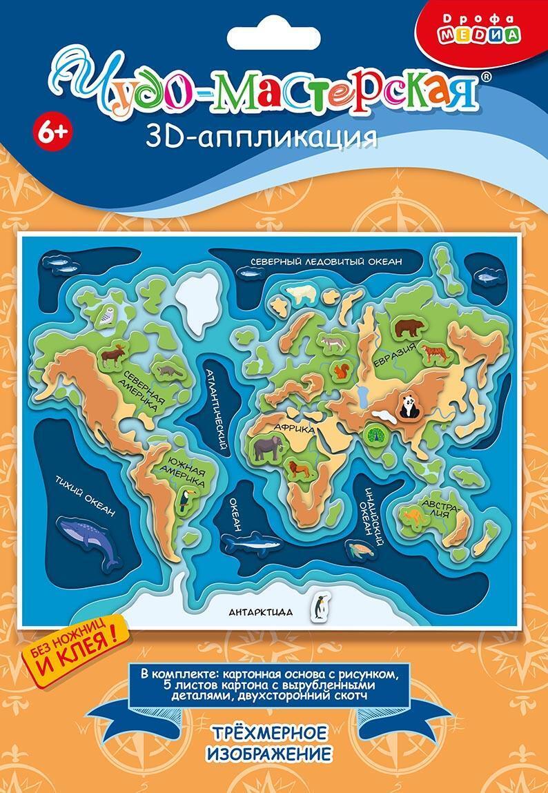 3D-аппликация "Карта мира", размер 20х25см, картон, для детей 6+