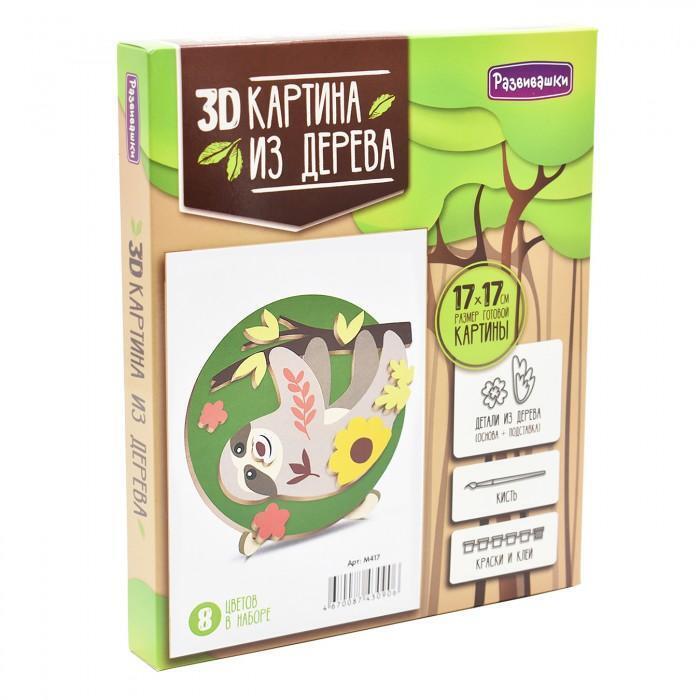 В набор входят все необходимые материалы для создания картины: детали из дерева, кисть, краски и клей. Размер готовой картины составляет 17х17 см, что позволяет легко разместить её на стене или столе. Набор подходит для детей и взрослых, что делает его идеальным для совместного творчества.