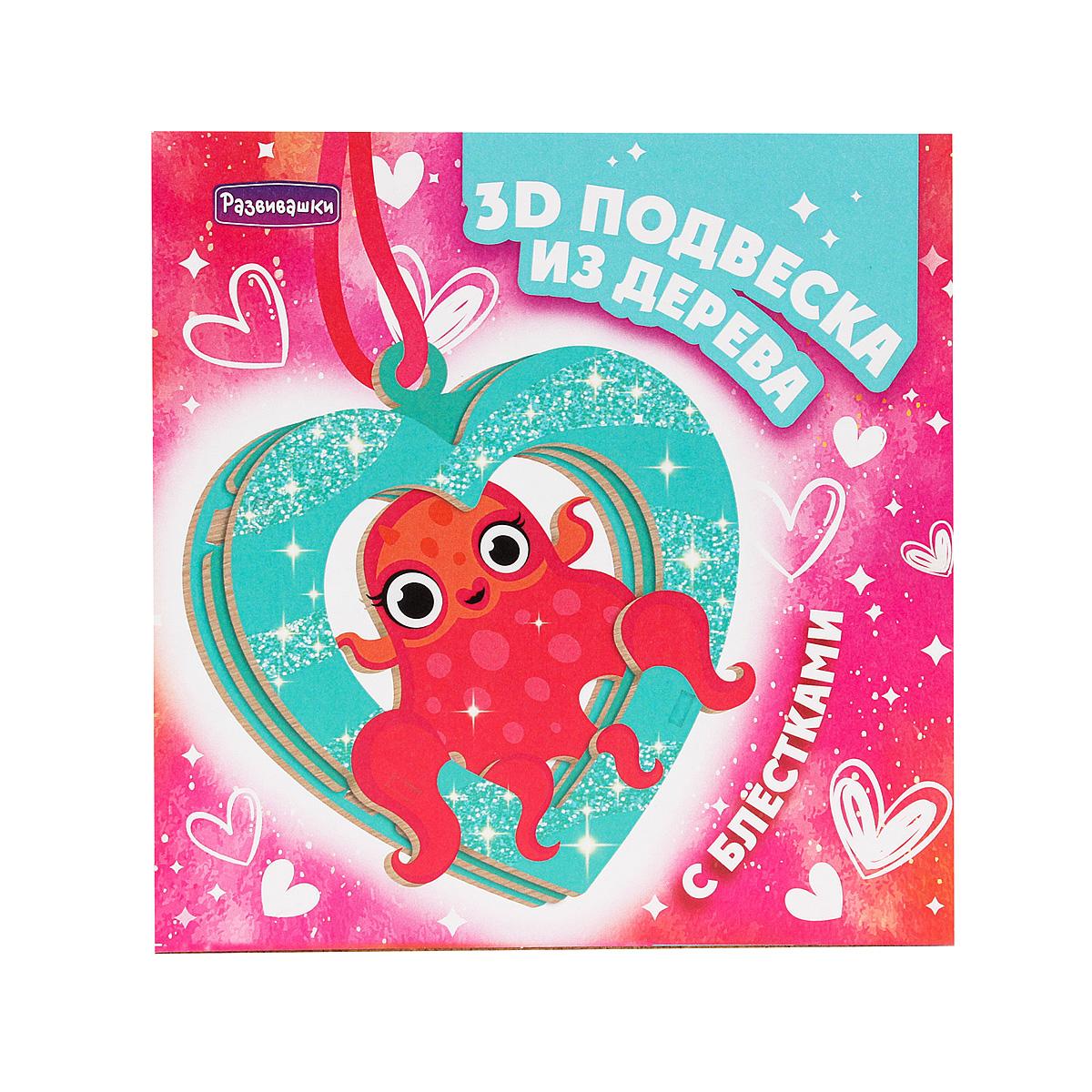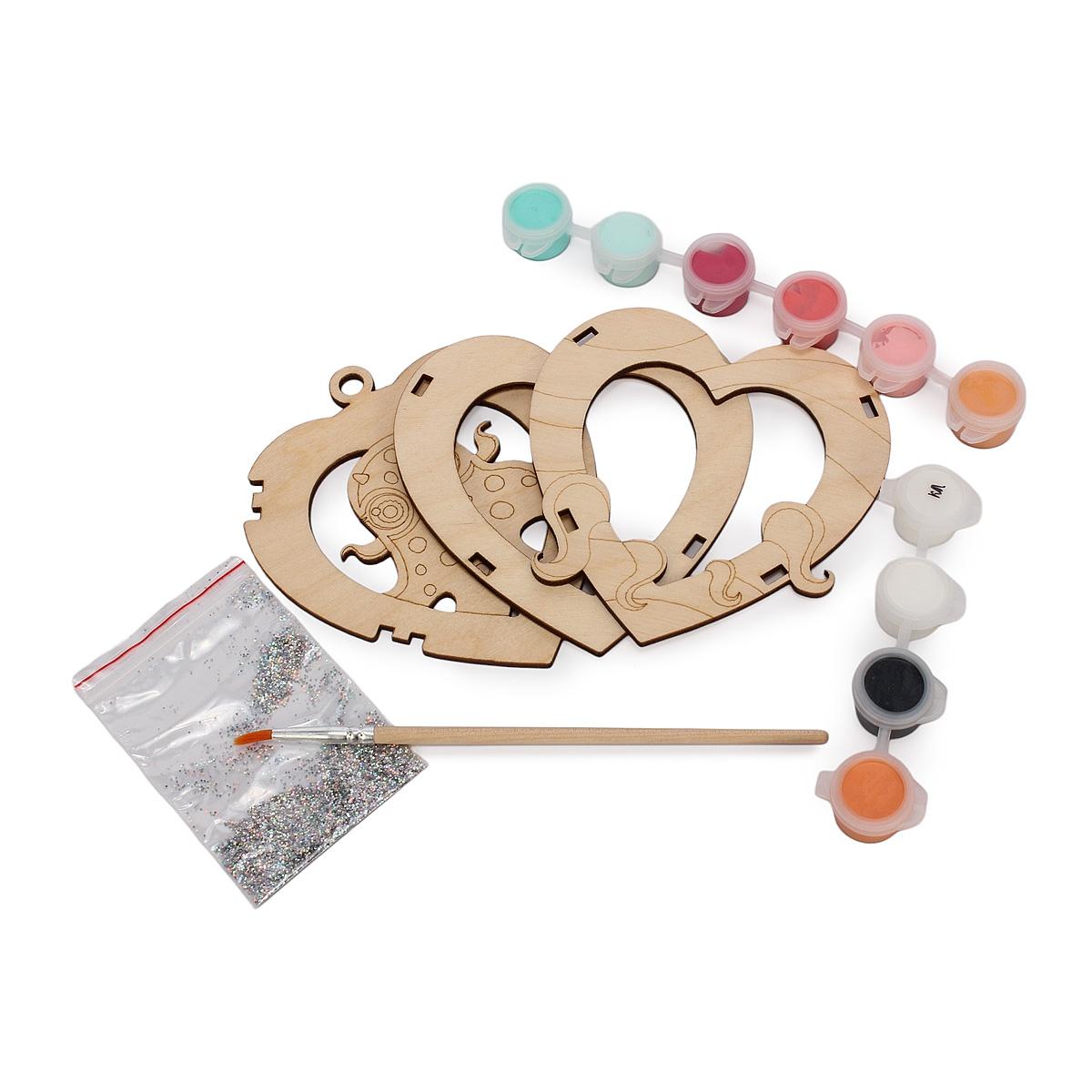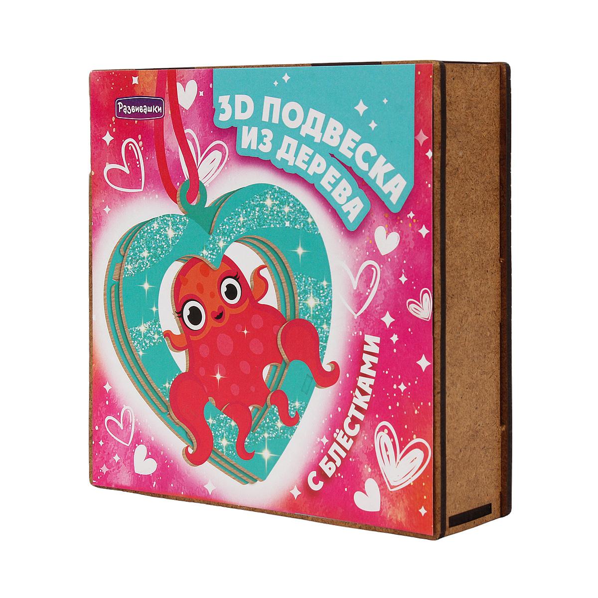 Набор для творчества «Влюблённая монстрячка»: 3D подвеска с блестками, дерево, краски, кисть