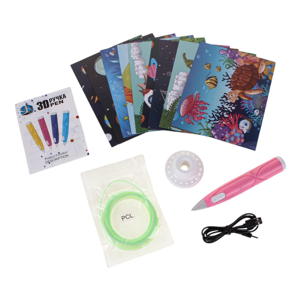 3D-ручка работает от USB-источника питания, что делает её удобной в использовании. В набор входят 3 мотка PCL пластика, которые позволят вам создавать разнообразные объекты. Также в комплекте вы найдете 10 картонных трафаретов, которые помогут вам начать ваше творчество. Ручка не имеет встроенного аккумулятора, поэтому её необходимо подключать к источнику питания во время работы.