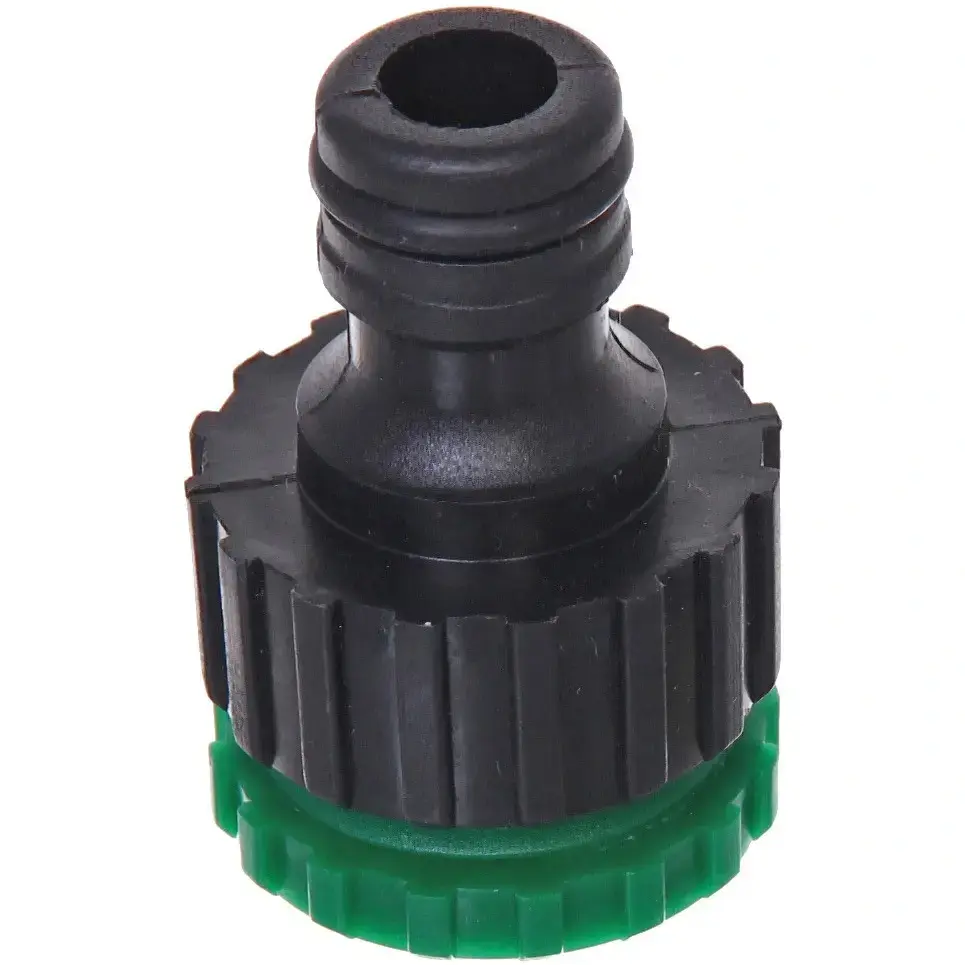 Адаптер имеет цилиндрическую форму и выполнен в черном цвете с зеленым ободком, что делает его стильным дополнением к вашему садовому инвентарю. Его размеры компактны, что позволяет легко хранить его в любом месте. Не упустите возможность сделать полив более удобным и эффективным с помощью этого адаптера-переходника!