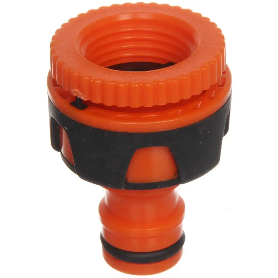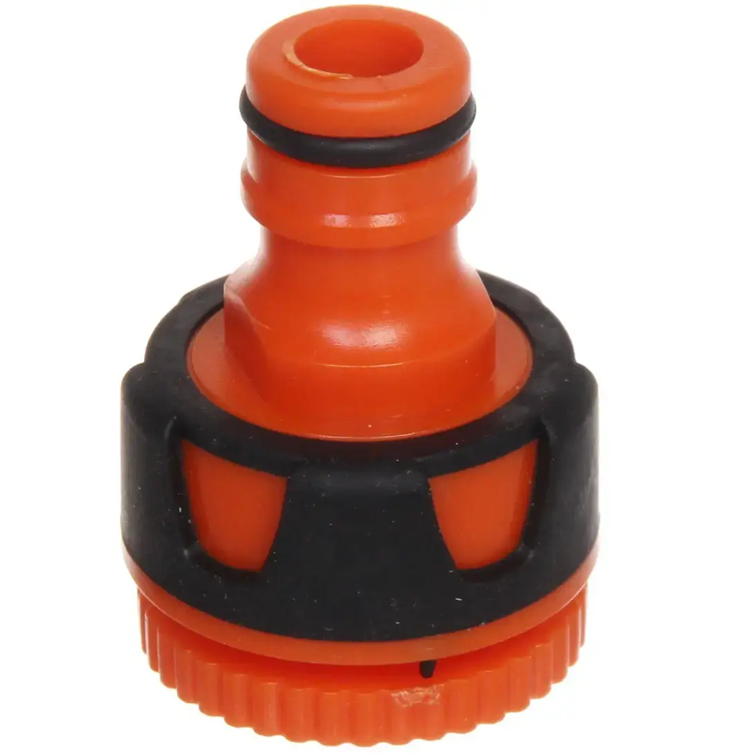 Преимущества адаптера «Professional» заключаются в его прочности и долговечности. Изготовленный из качественного пластика, он устойчив к воздействию воды и ультрафиолетовых лучей, что гарантирует долгий срок службы. Резиновое уплотнение предотвращает протечки, обеспечивая надежное соединение. Ярко-оранжевый и черный цвет делают его заметным и стильным элементом вашего садового инвентаря.