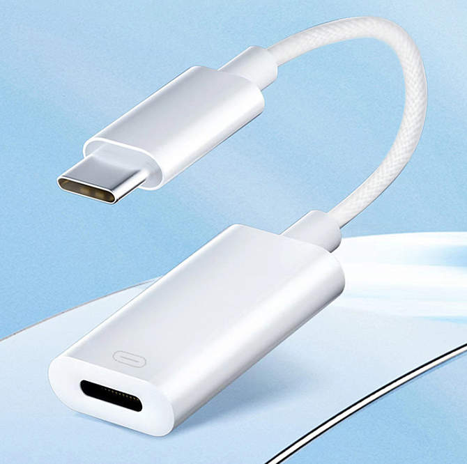 Адаптер «WA-025» USB-C — Lightning, белый, плетёный кабель, компактный дизайн