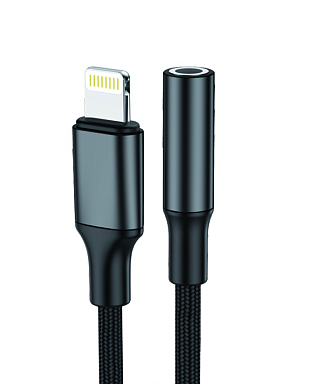 Аудио-адаптер WALKER WA-030 Lightning — 3.5 мм, черный, прочный текстильный корпус