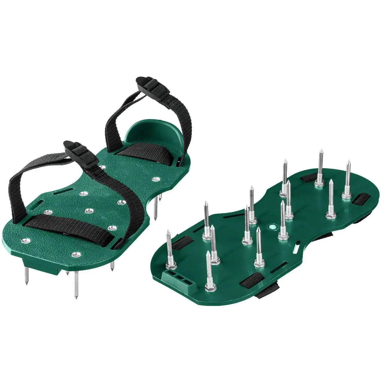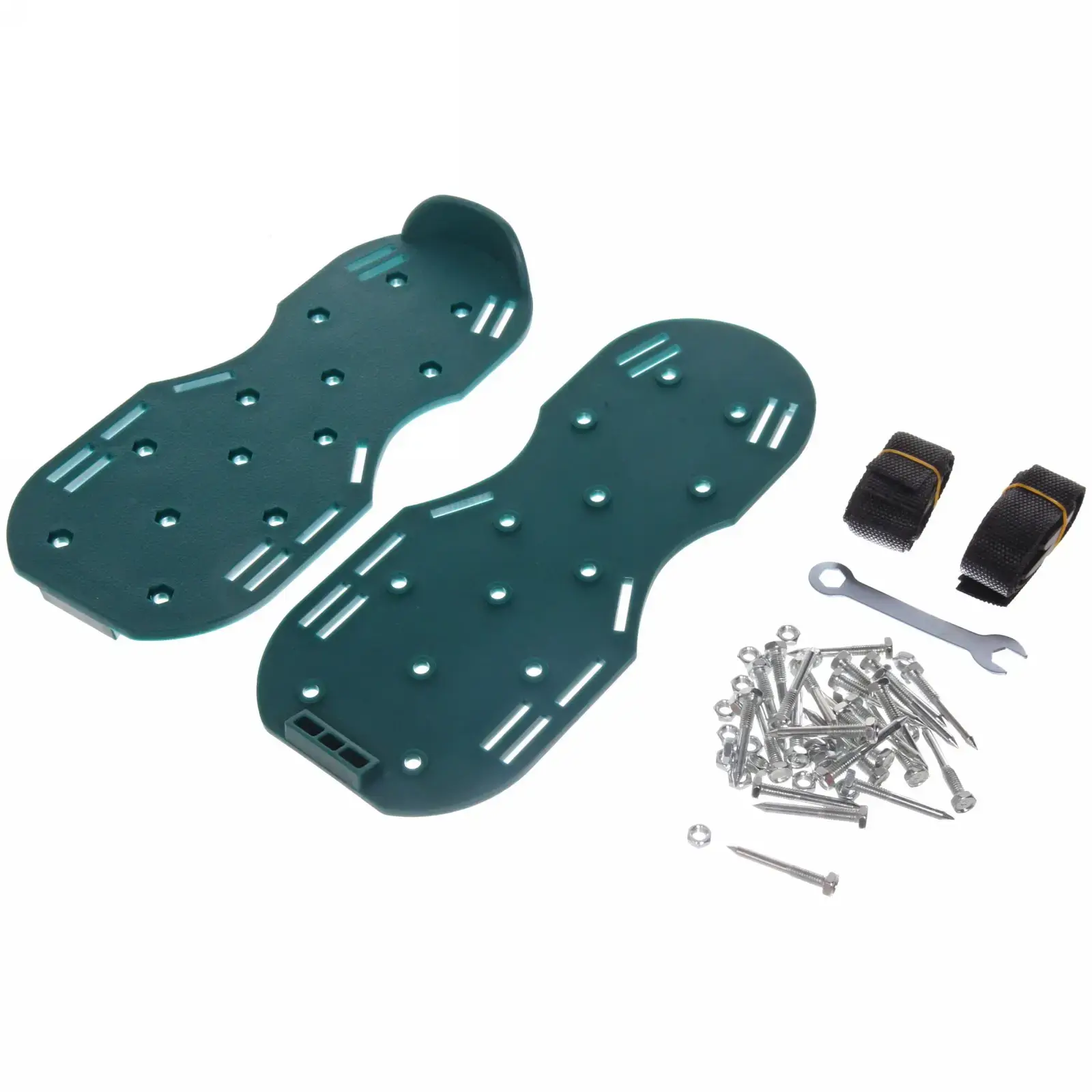 Аэратор изготовлен из прочного металла и пластика, что обеспечивает его долговечность. Он имеет два регулируемых ремня для надежной фиксации на обуви. Размеры аэратора: 30 см в длину, 13 см в ширину и 4 см в высоту. Этот инструмент станет незаменимым помощником в уходе за вашим газоном.