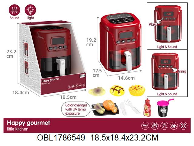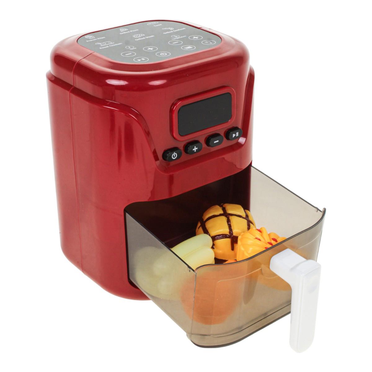 Эта игрушечная аэрогриль оснащена световыми и звуковыми эффектами, которые делают игровой процесс максимально реалистичным и захватывающим. Ребенок сможет имитировать процесс приготовления различных блюд, используя входящие в комплект аксессуары: маленькую ложечку и бутылочку с «сиропом» или «соусом». Цифровая панель с кнопками управления и небольшой дисплей добавляют интерактивности, позволяя юному кулинару выбирать различные режимы.