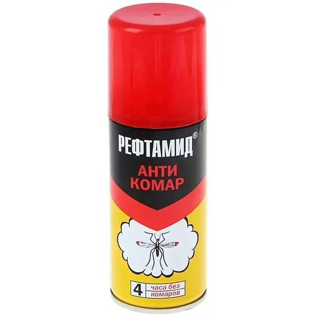 Объем аэрозоля составляет 100 мл, что достаточно для нескольких применений. Упаковка имеет цилиндрическую форму с красным верхним колпачком и черно-желтой расцветкой, что делает ее заметной и стильной. Не упустите возможность защитить себя и своих близких от назойливых насекомых с помощью «Рефтамид Антикомар»!