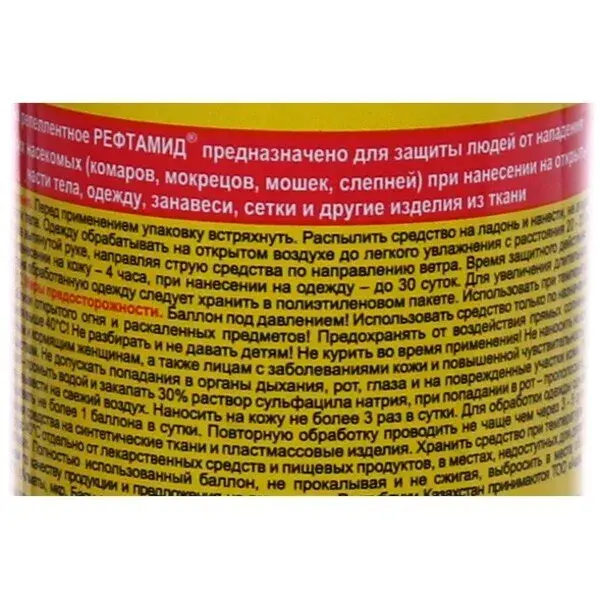 Аэрозоль предназначен для нанесения на открытые участки тела и одежду. Перед использованием обязательно встряхните баллончик и распылите средство, следуя инструкциям на упаковке. Это средство подходит для использования в пищевых зонах, что делает его идеальным для пикников и дачных выездов.
