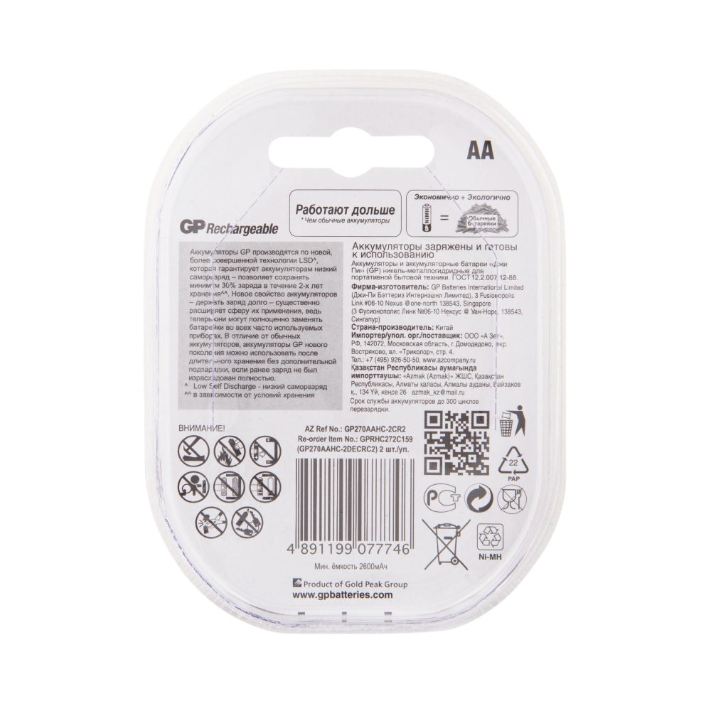 Аккумулятор GP R06 2700 mAh BL/2 ReENERGY