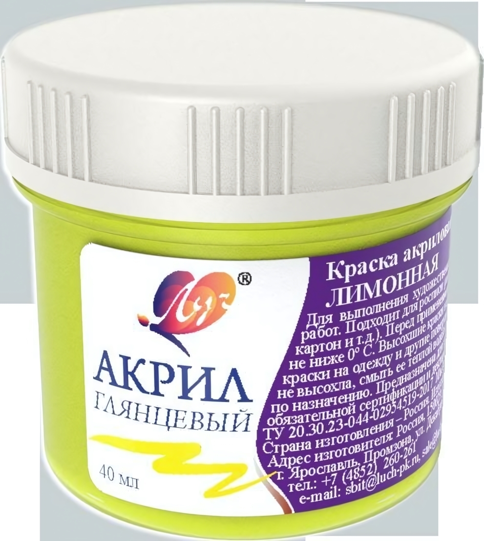 Откройте для себя мир ярких красок с акриловой краской лимонного цвета объемом 40 мл. Эта краска идеально подходит для свободной росписи и художественного декорирования, позволяя вам создавать уникальные произведения искусства. Благодаря своей густой консистенции, краска не растекается и равномерно распределяется по поверхности, обеспечивая плотный слой и насыщенный цвет.