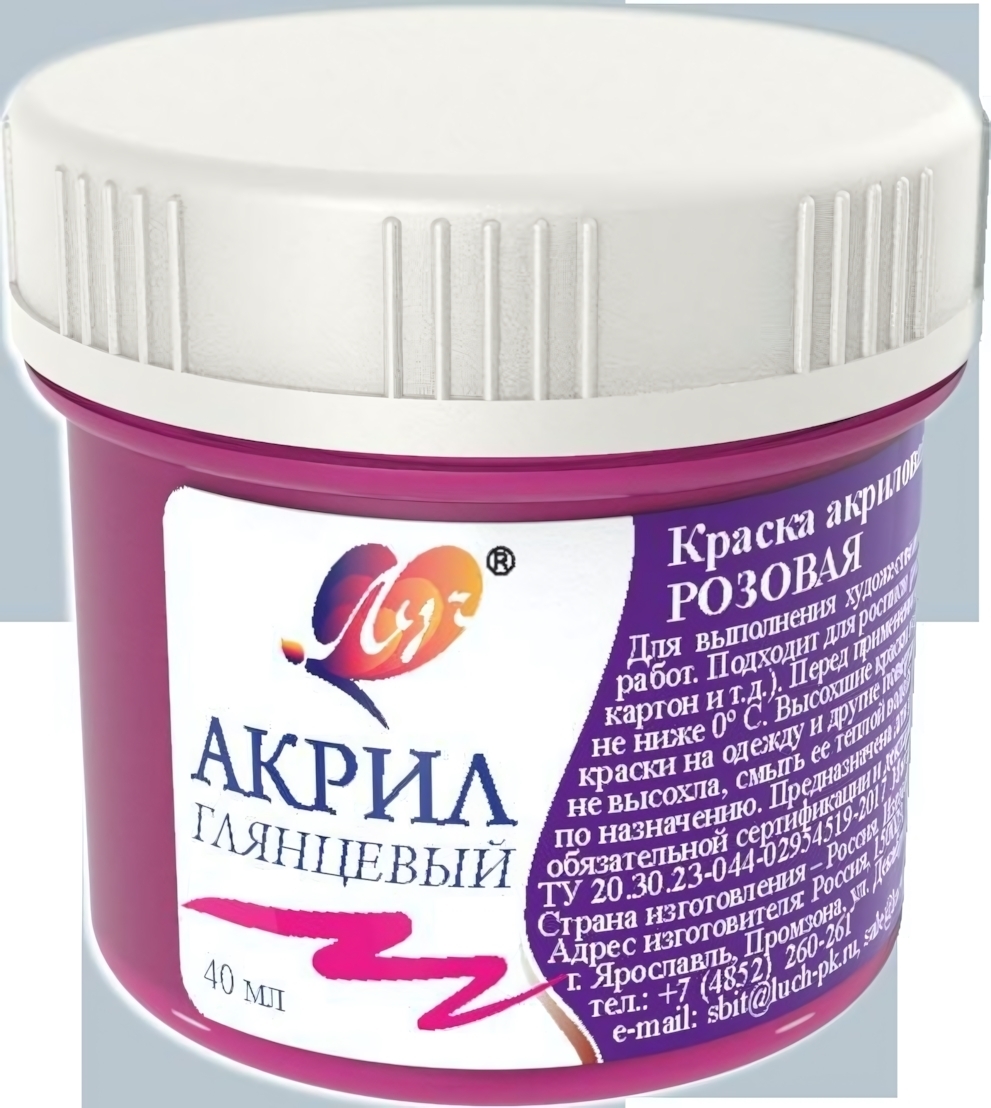 Краска 'Луч' станет вашим надежным помощником в мире творчества. Ее насыщенный розовый цвет и глянцевый финиш придадут вашим работам особую выразительность.