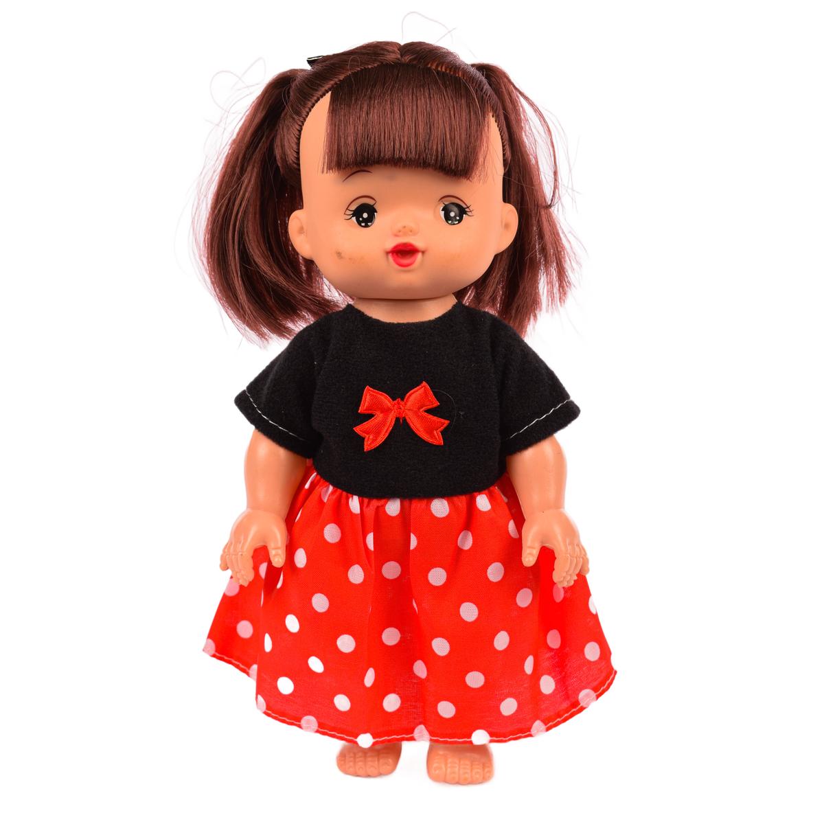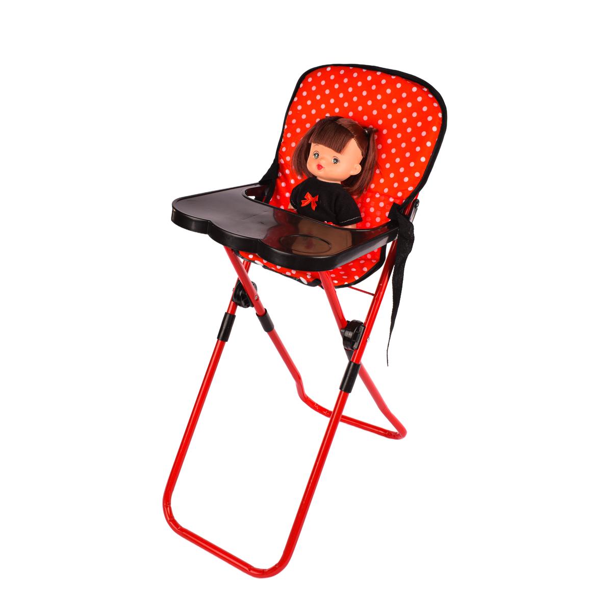 Стульчик для куклы красный с горошком, складной, с пластиковым столиком