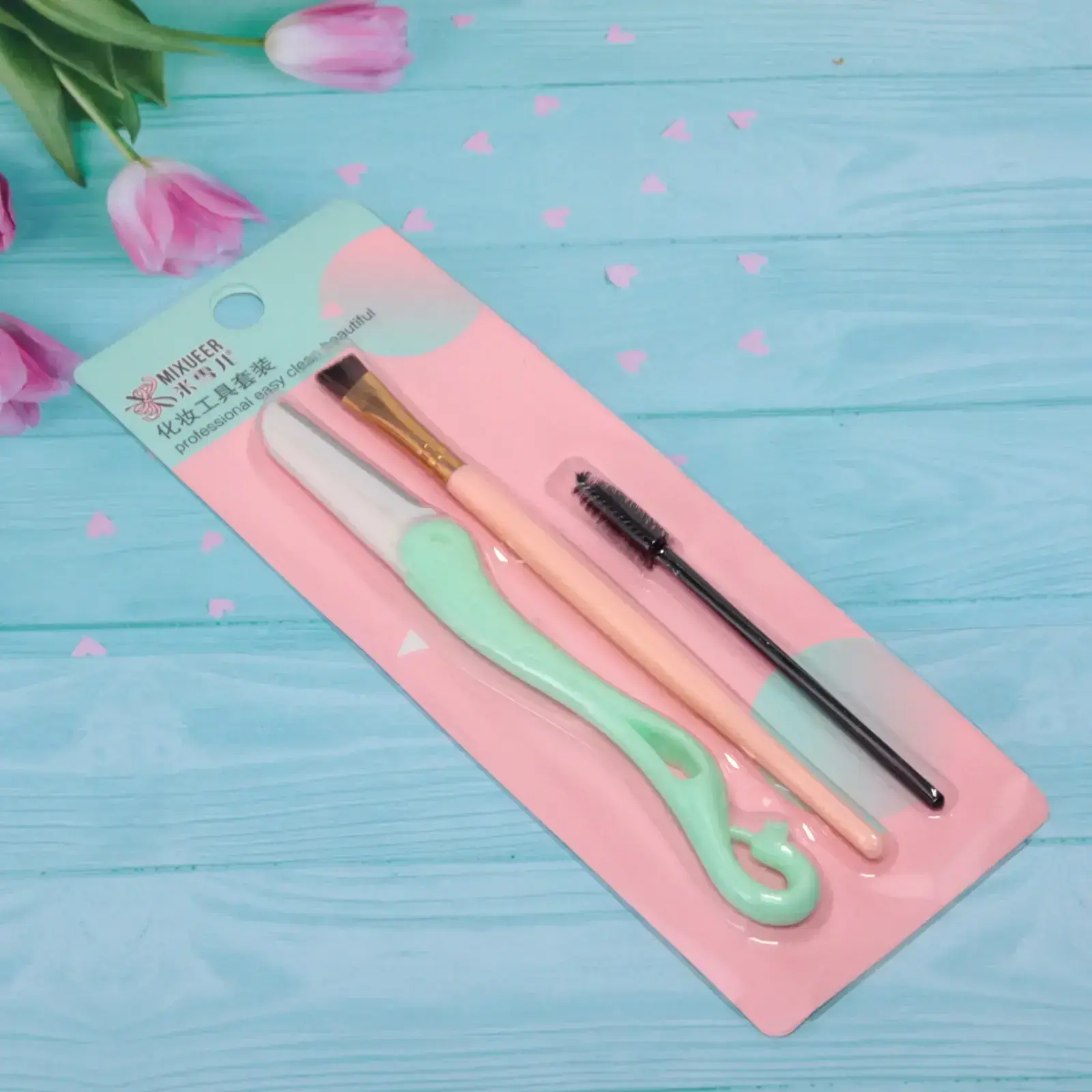 Набор состоит из косметической кисти, щеточки для ресниц и корректора-лезвия. Эти инструменты идеально подходят для домашнего использования и профессионального макияжа. Кисть с длинной ручкой и мягкими ворсинками позволяет равномерно наносить косметику, а щеточка помогает укладывать брови в нужном направлении. Корректор-лезвие, выполненное из прозрачного пластика, удобно использовать для удаления лишних волосков и создания четких линий.