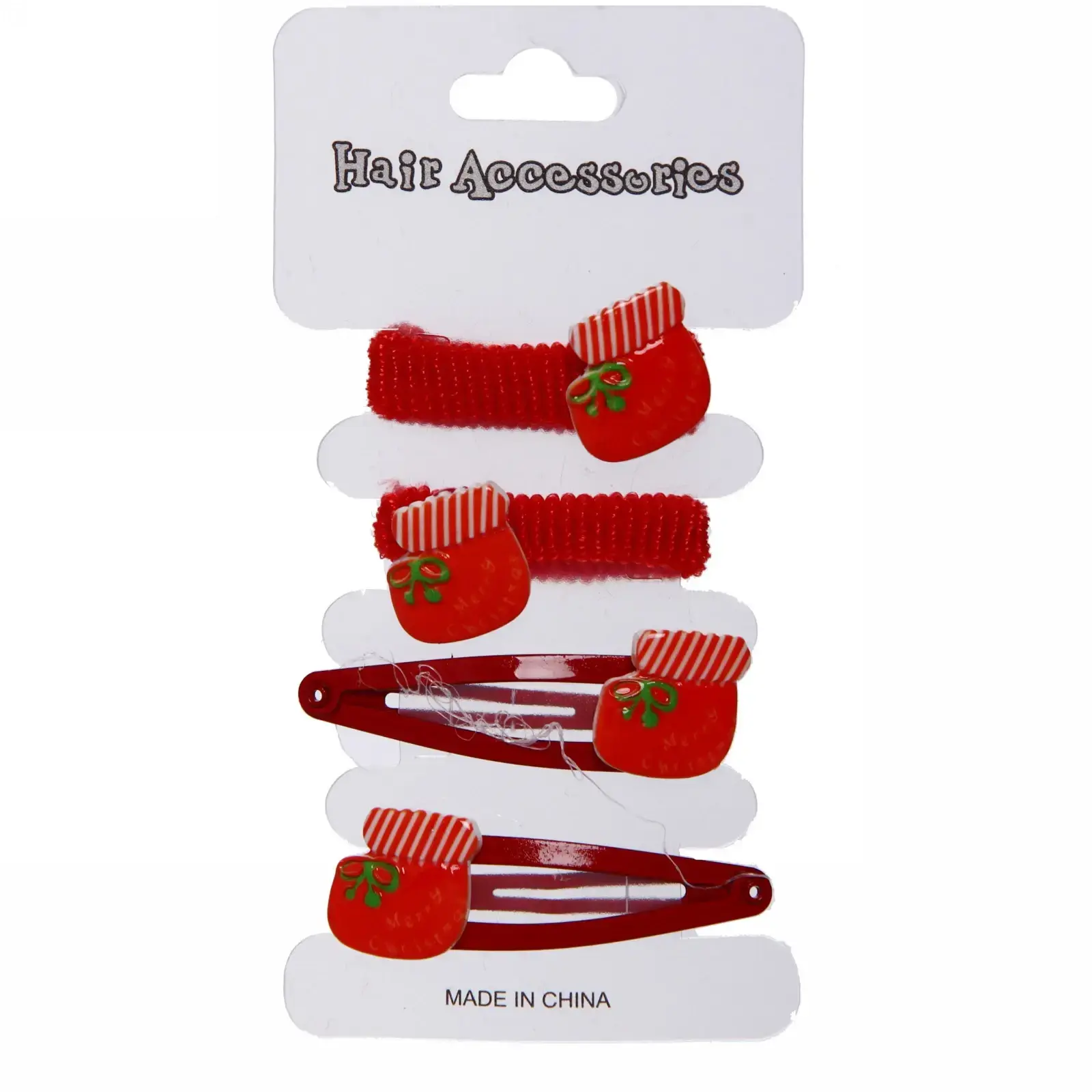 Набор аксессуаров для волос 'Сказка - Новогодние носочки', красный, 2 резинки 3см / 2 зажима 5см