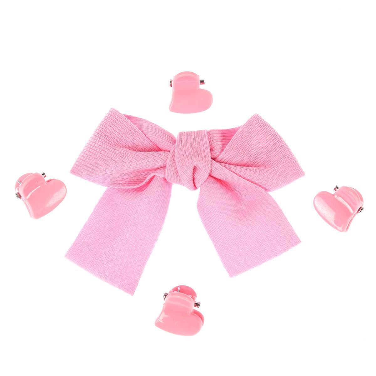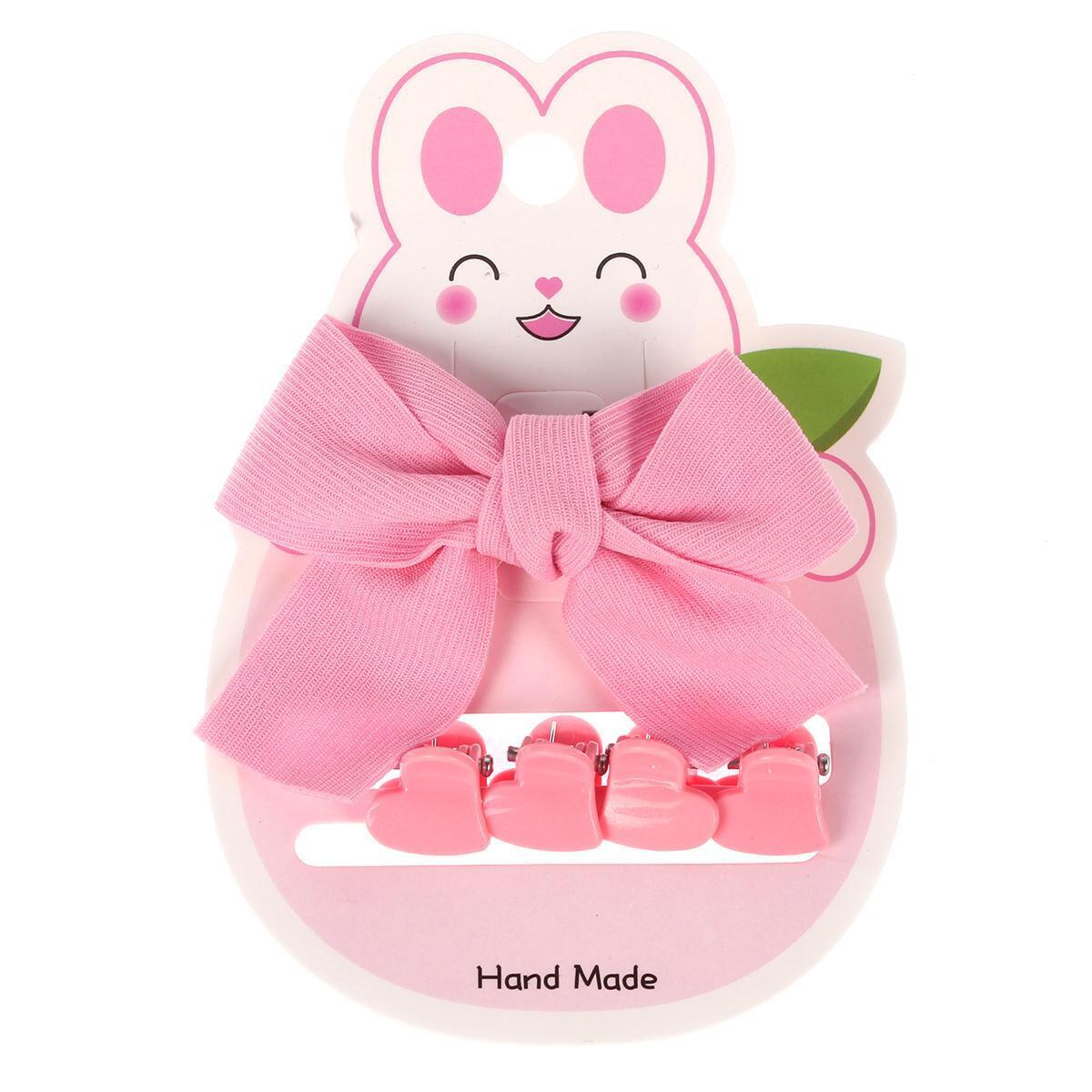 Заколки детские 'Бамби бум', розовые, набор 5 шт, текстиль/металл