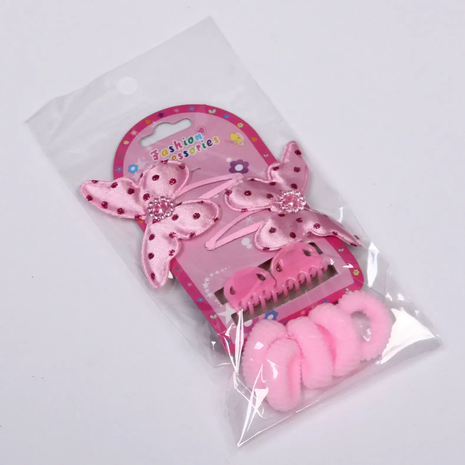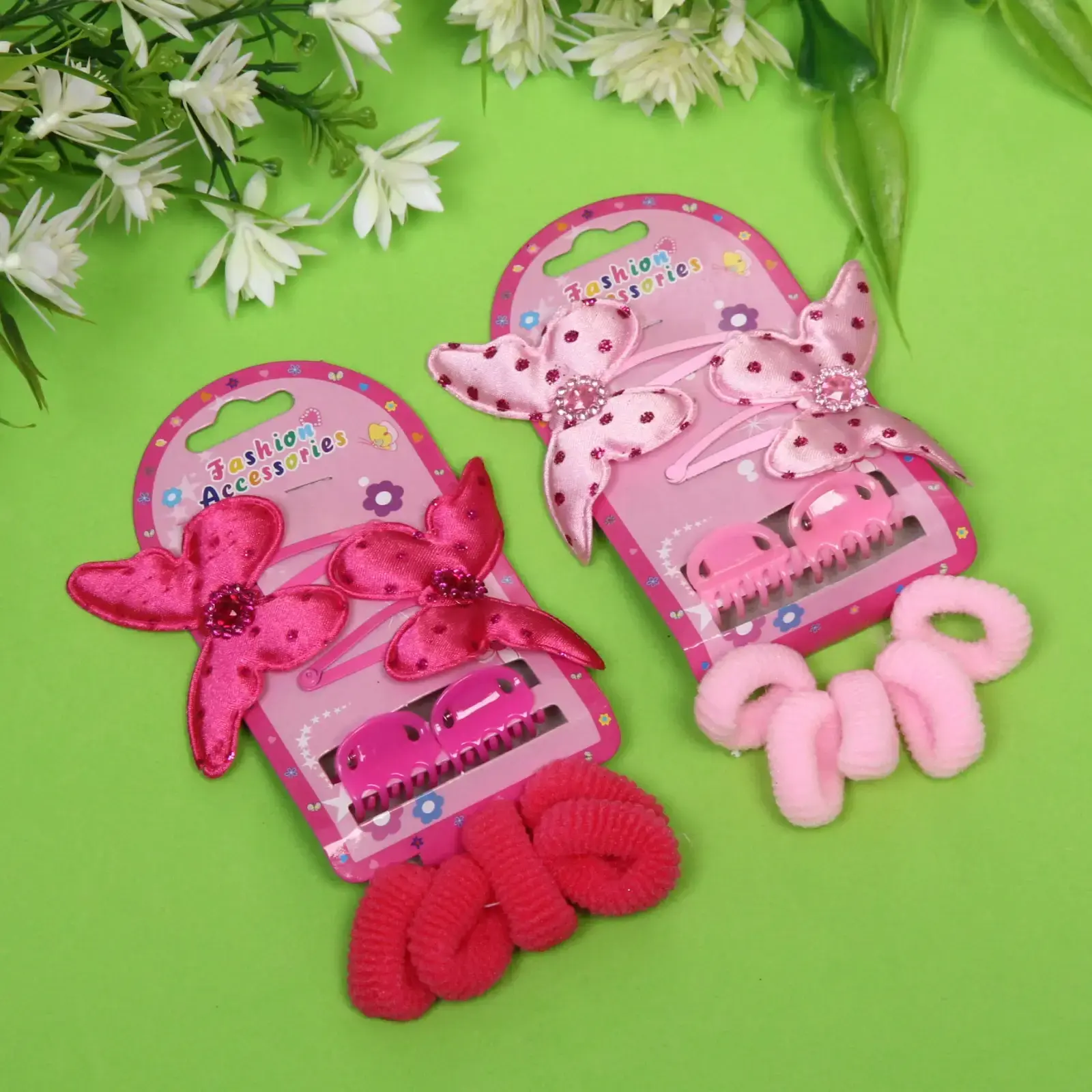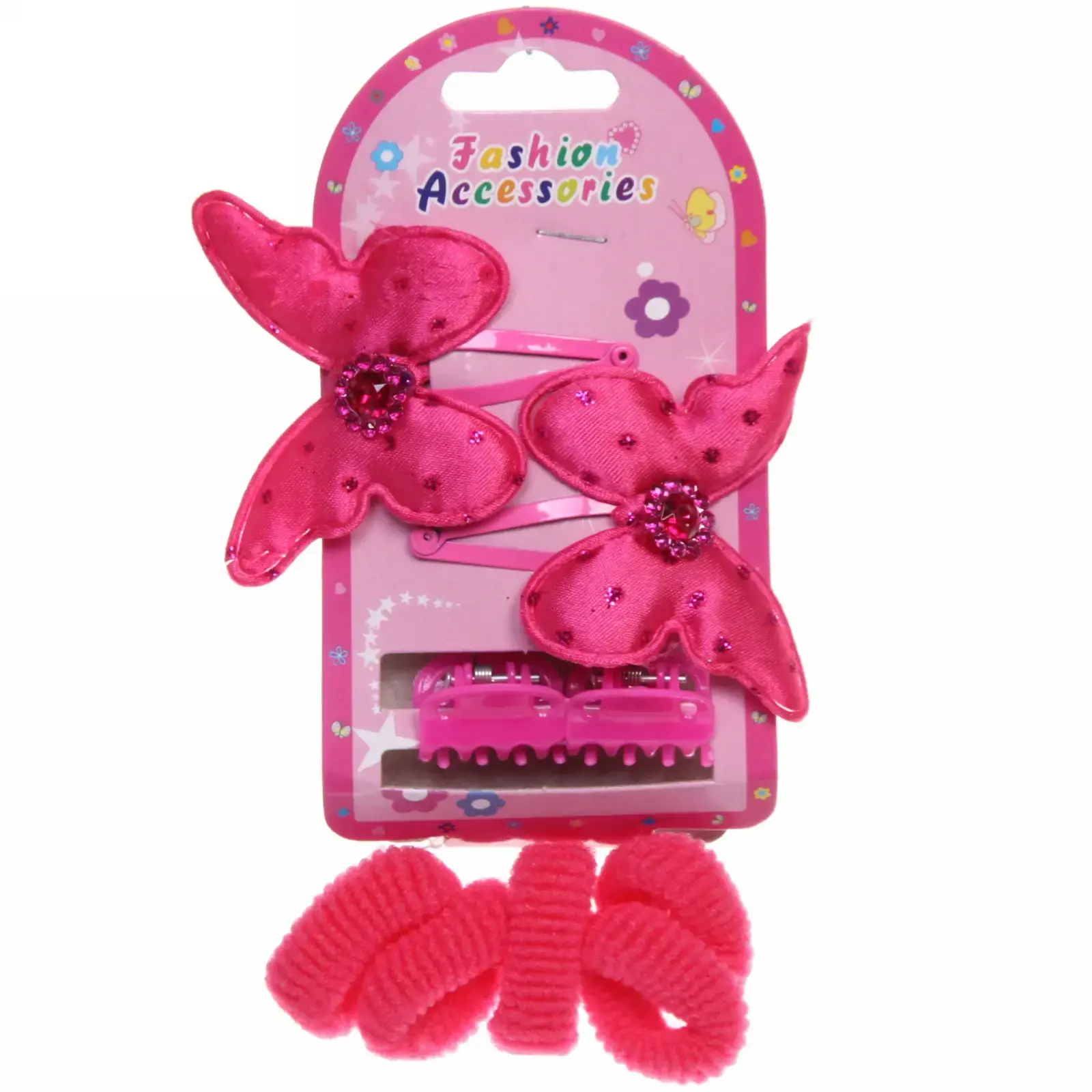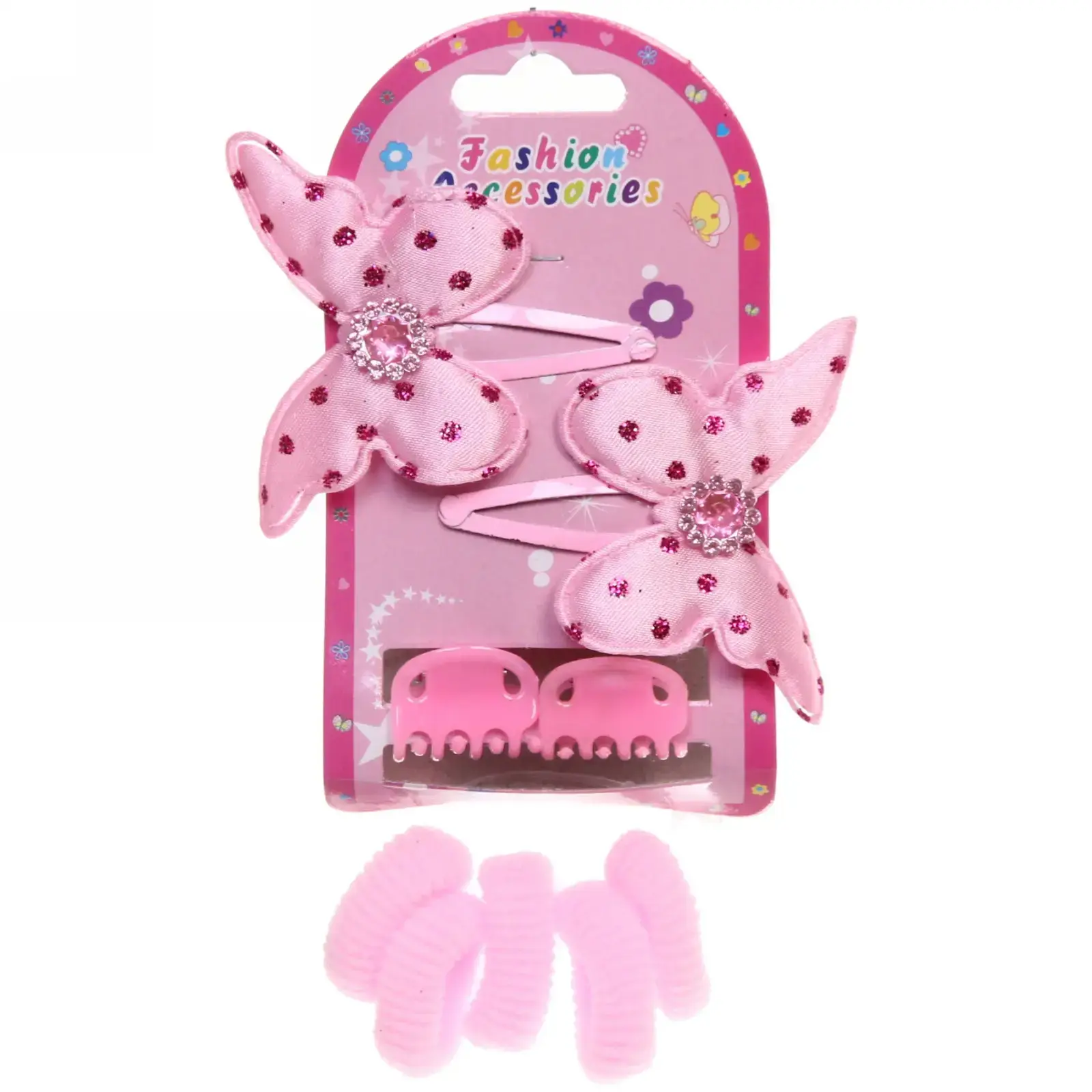 Все элементы выполнены в нежных розовых и фиолетовых оттенках, что делает их идеальными для детских причесок. Упаковка оформлена в ярком дизайне с надписью «Fashion Accessories», что добавляет привлекательности и делает набор отличным подарком для девочек.