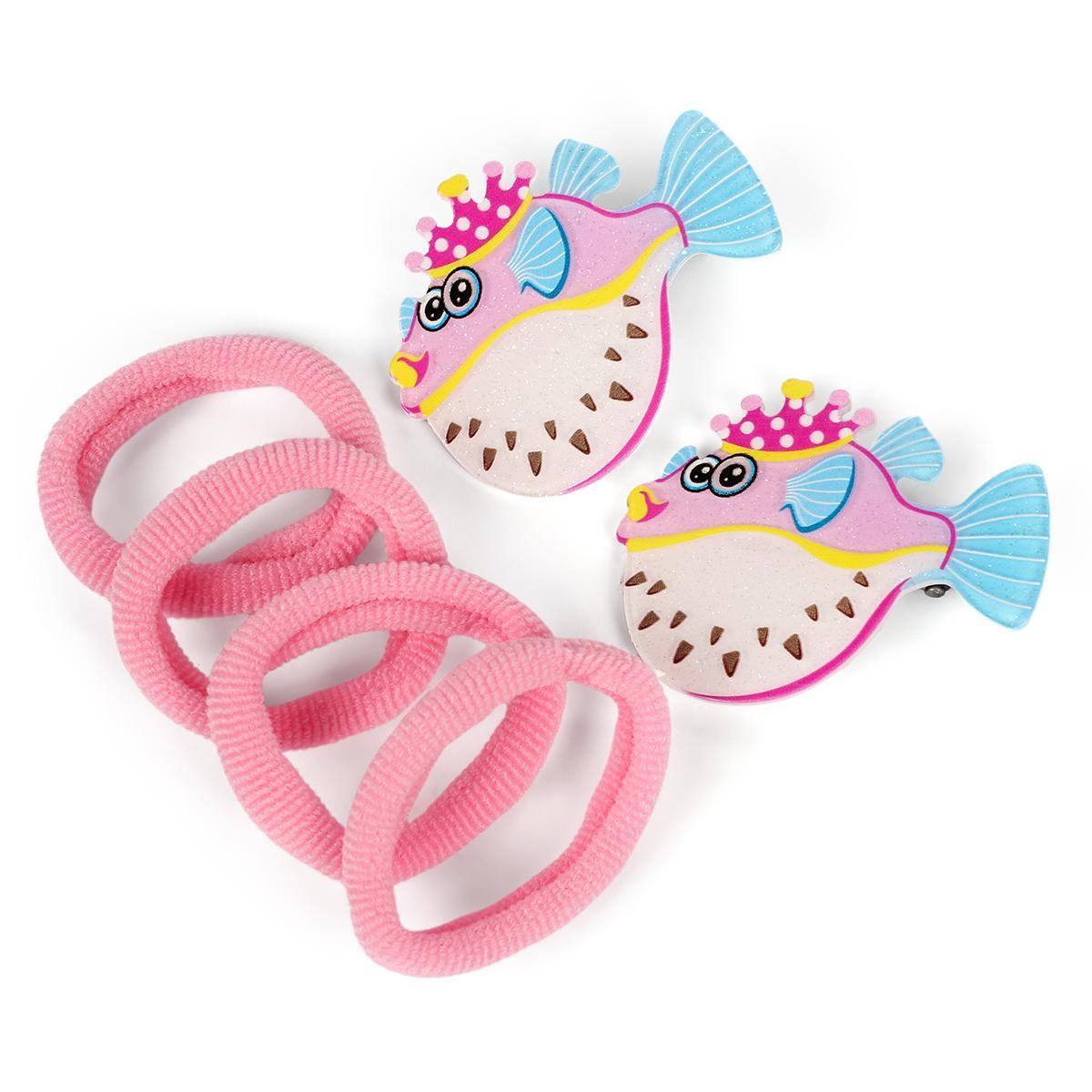 Этот набор включает 2 заколки в виде рыбок и 4 резинки, созданные специально для маленьких модниц. Яркий дизайн, насыщенные цвета и декоративные элементы добавляют вашему ребенку индивидуальности и позволяют легко создавать красивые прически.