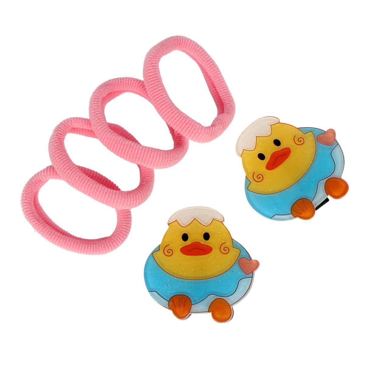 Набор включает 2 зажима в виде утят и 4 резинки розового цвета, которые идеально подходят для девочек. Эти аксессуары легко использовать для создания различных причесок: от простых хвостиков до сложных укладок. Они подойдут как для повседневного использования, так и для особых случаев, таких как дни рождения или праздники.