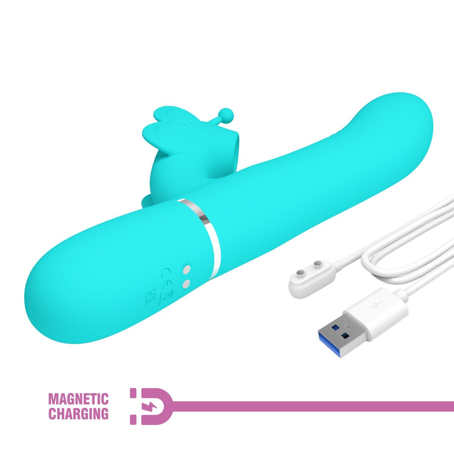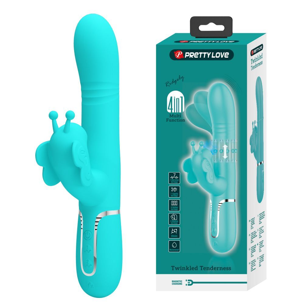 Вибратор-кролик "Ridgely" аквамариновый, 22.6см, силикон, магнитная зарядка
