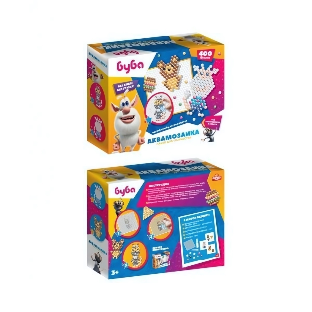 Аквамозаика детская «Буба», 400 бусин, безопасная сборка водой, пластик, 7х23х18см