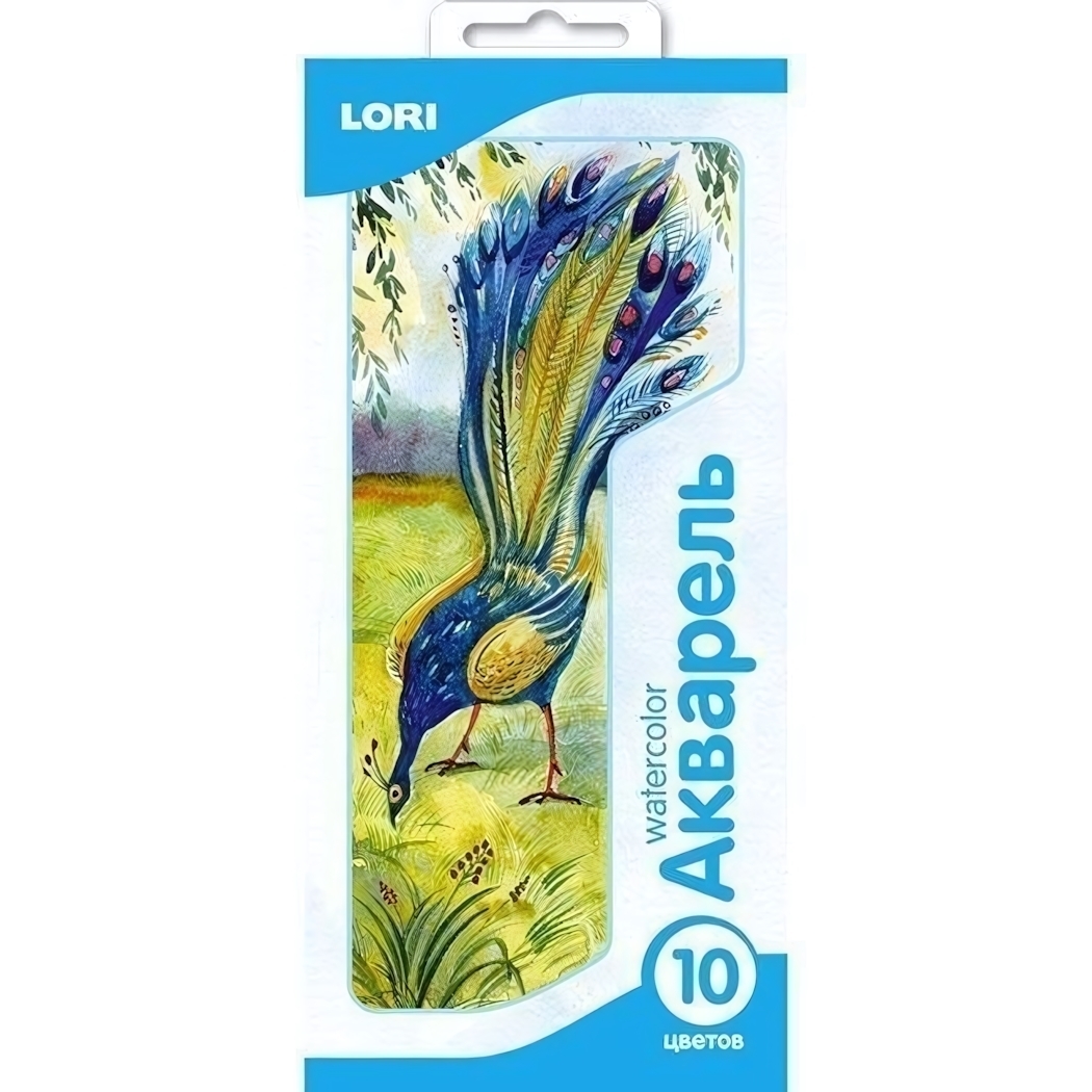 Акварель Lori, 10 ярких цветов для творчества, картонная упаковка с павлином