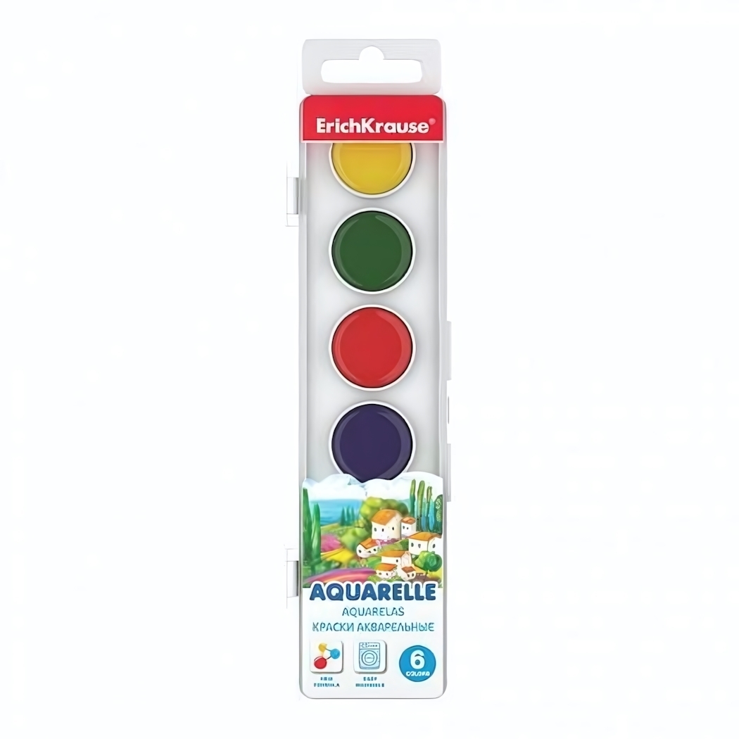 Акварель Erich Krause, 6 цветов в пластиковом контейнере, матовая текстура