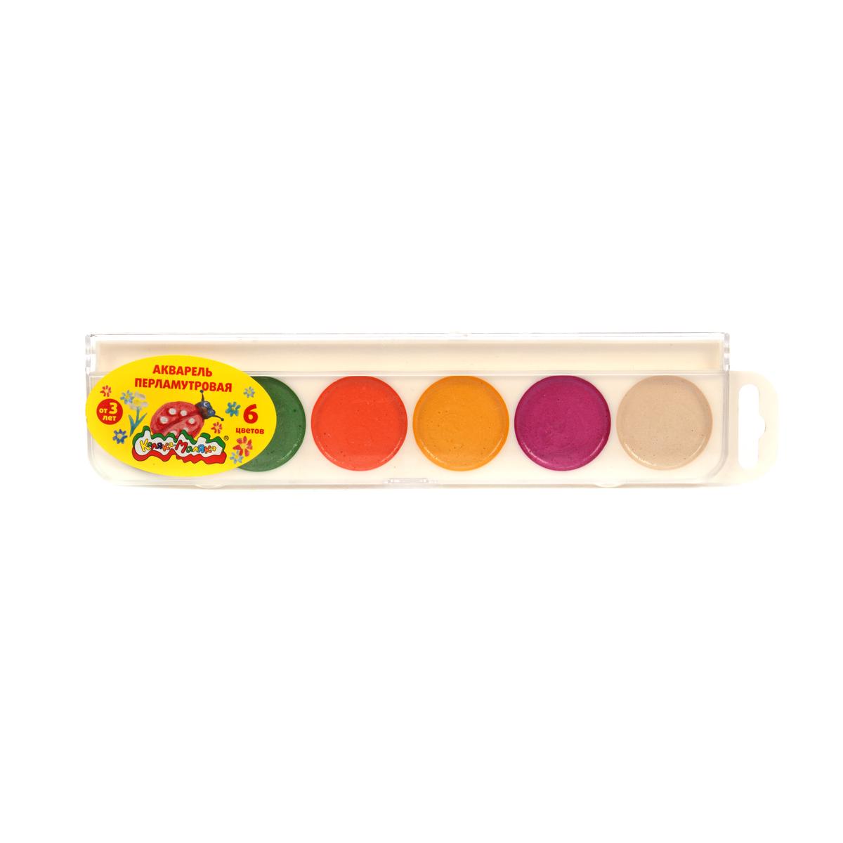 Акварель перламутровая 'Каляка-Маляка' 6 цветов, пластиковая упаковка
