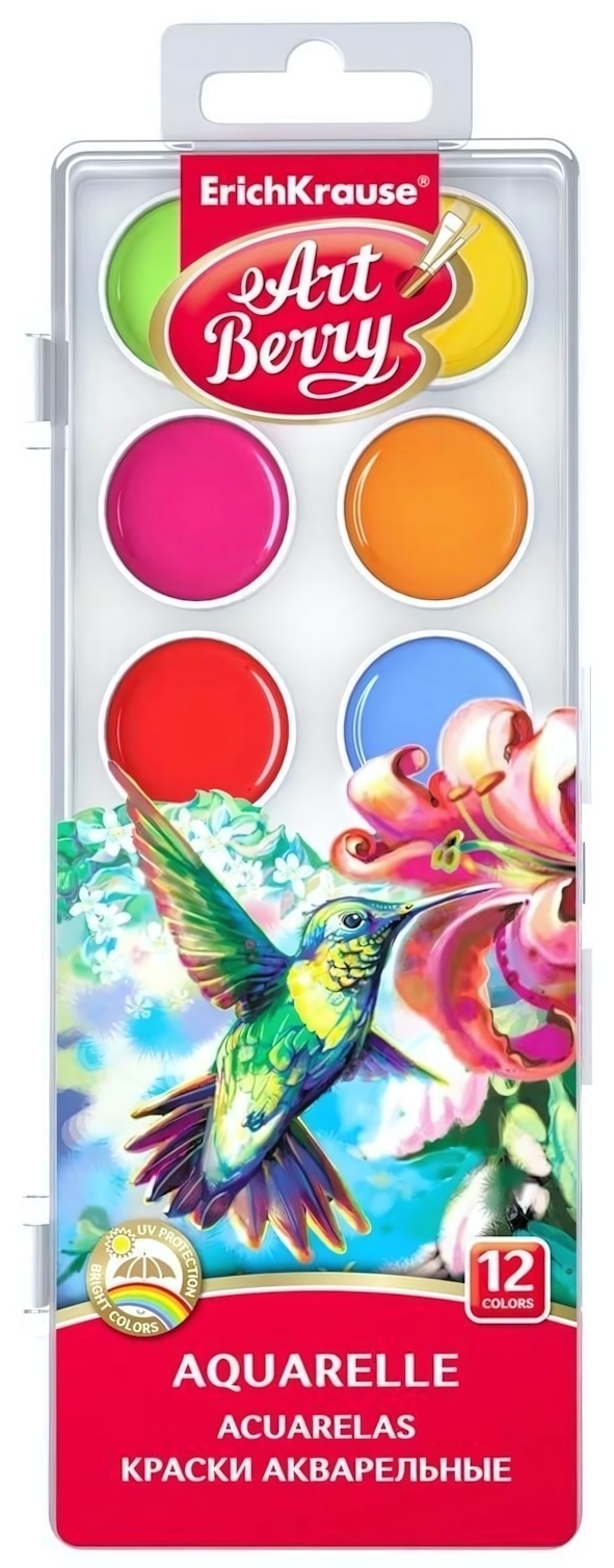 Акварель Artberry, 12 ярких цветов, УФ-защита, для рисования, Erich Krause