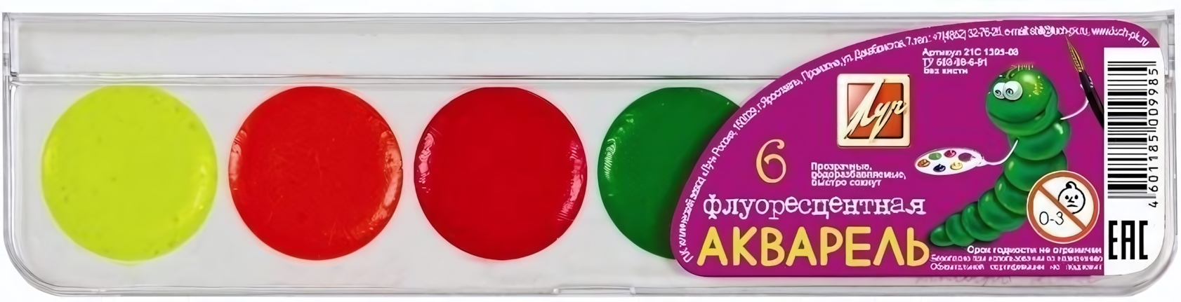 Акварель флуоресцентная "Фантазия", 6 ярких цветов, для детского творчества