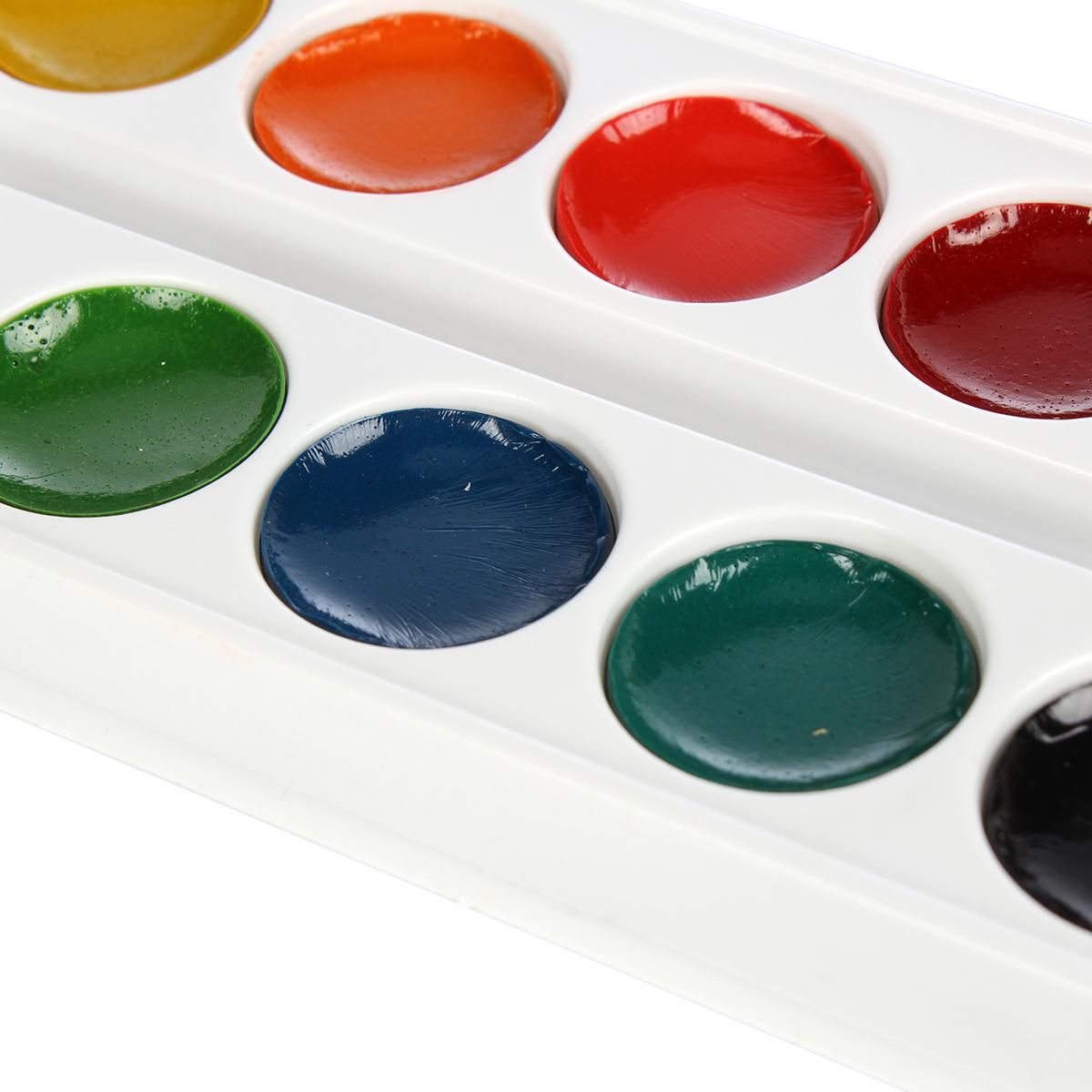 Каждая ячейка диаметром около 3 см содержит яркую акварель, которая легко растворяется в воде и наносится на бумагу. Гладкая текстура красок обеспечивает равномерное покрытие и приятное рисование.