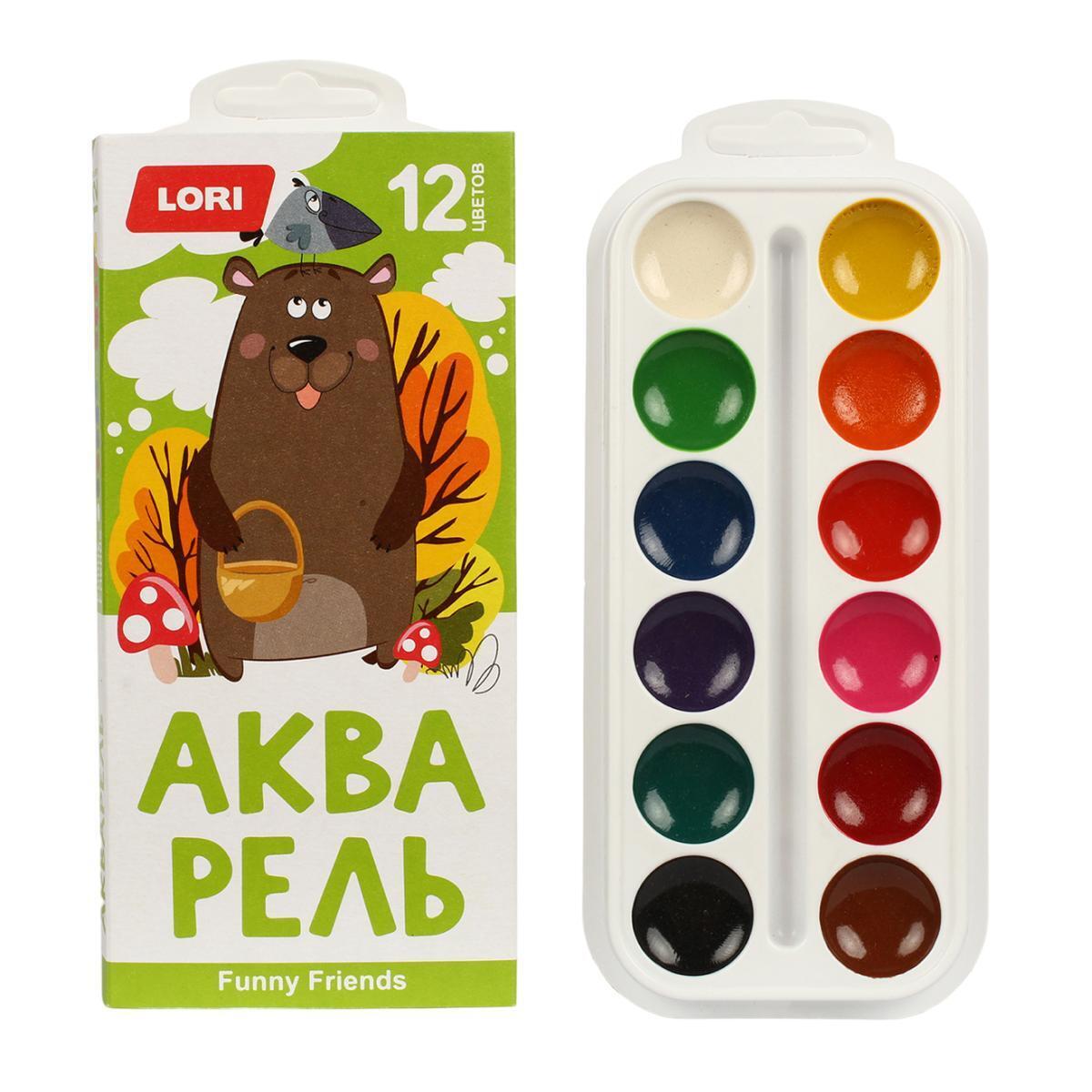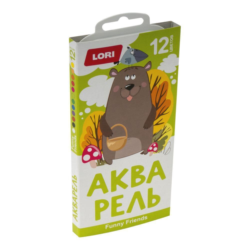 Акварель детская Lori "Funny Friends", 12 ярких цветов для творчества, без кисти