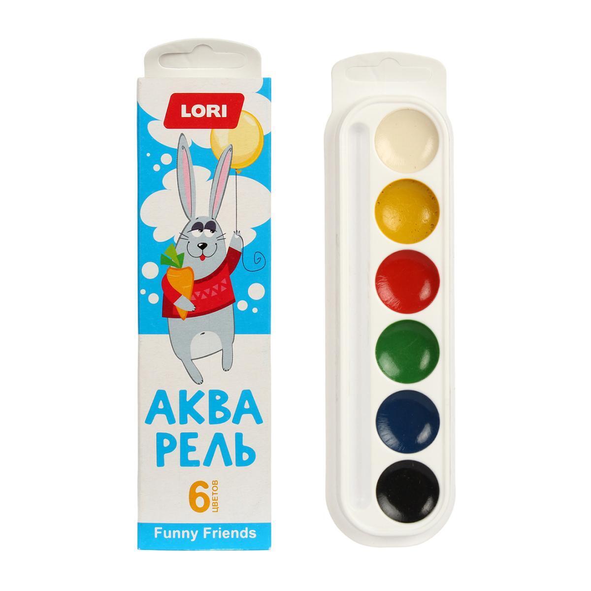 Акварель детская «Funny Friends» 6 цветов, безопасный состав, картонная упаковка с подвесом