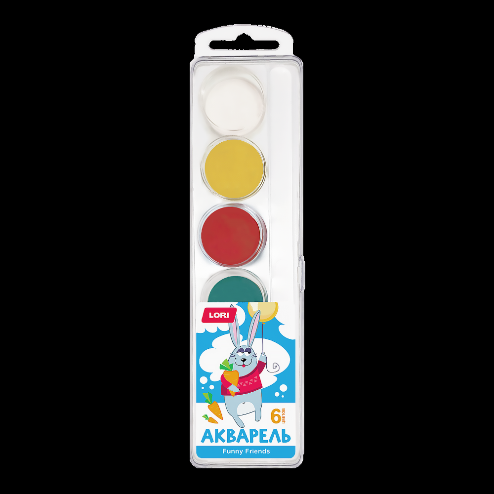 Акварель детская Lori "Funny Friends", 6 цветов, яркие краски для творчества