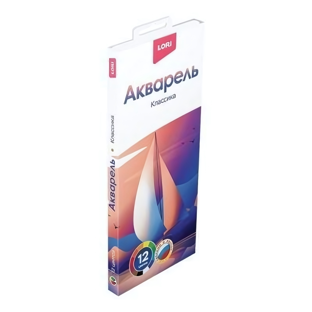Акварель классическая, 12 цветов Lori, яркие краски для творчества, европодвес