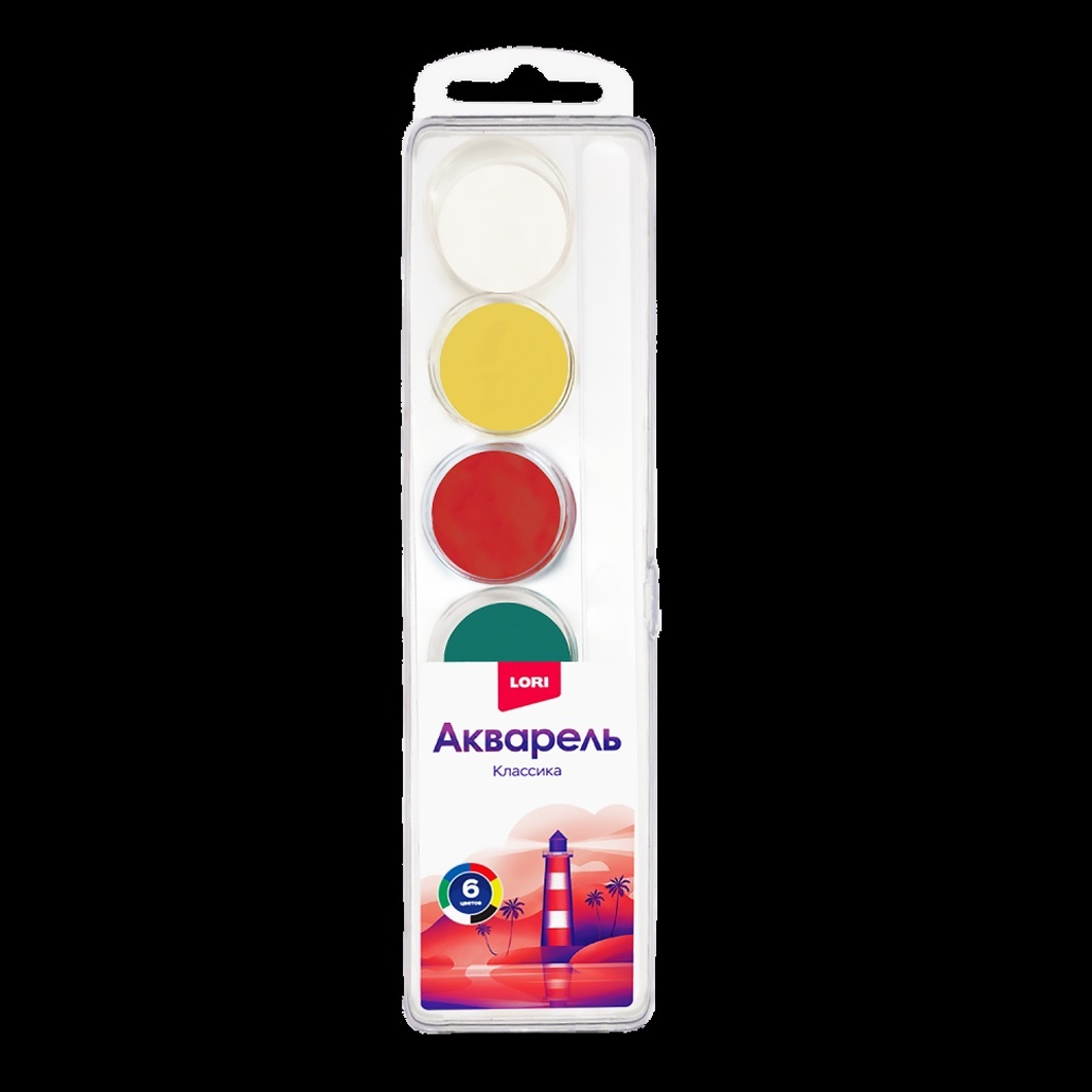 Акварель классическая Lori, 6 цветов, яркие оттенки, пластиковая упаковка