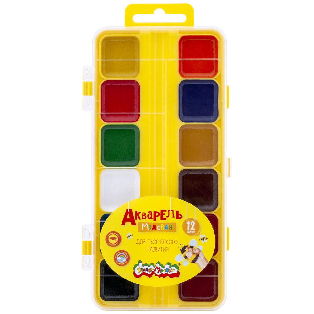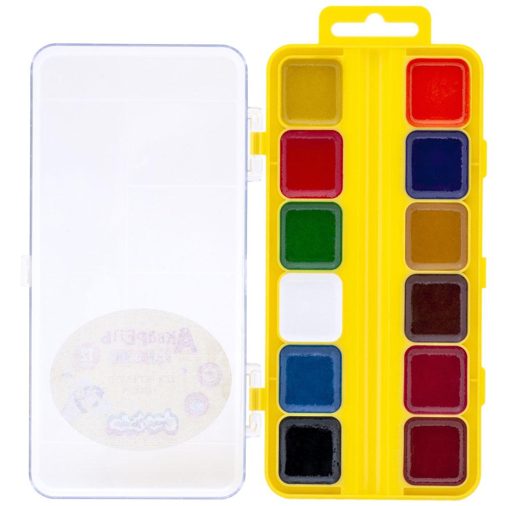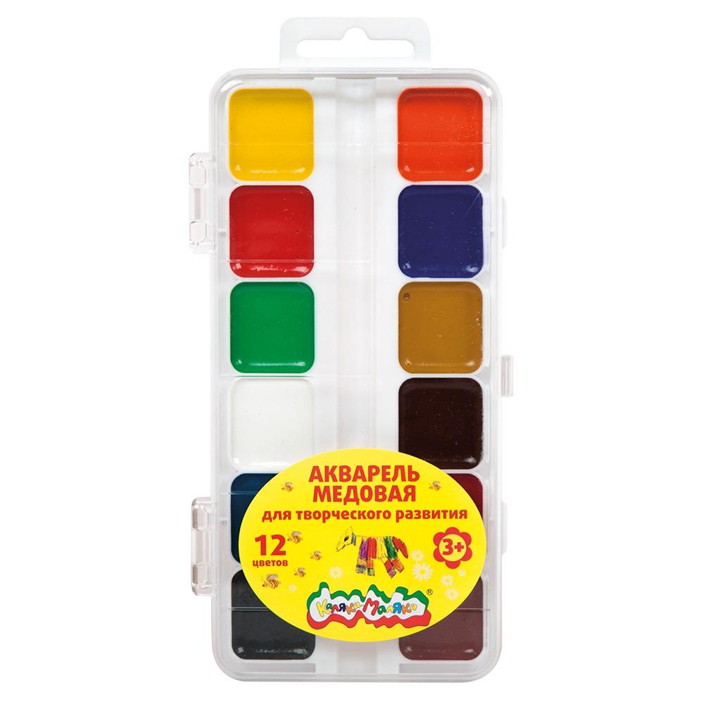 Акварель Каляка‑Маляка 12 цветов, пластик, без кисти, с европодвесом, 12 кюветов, яркая упаковка