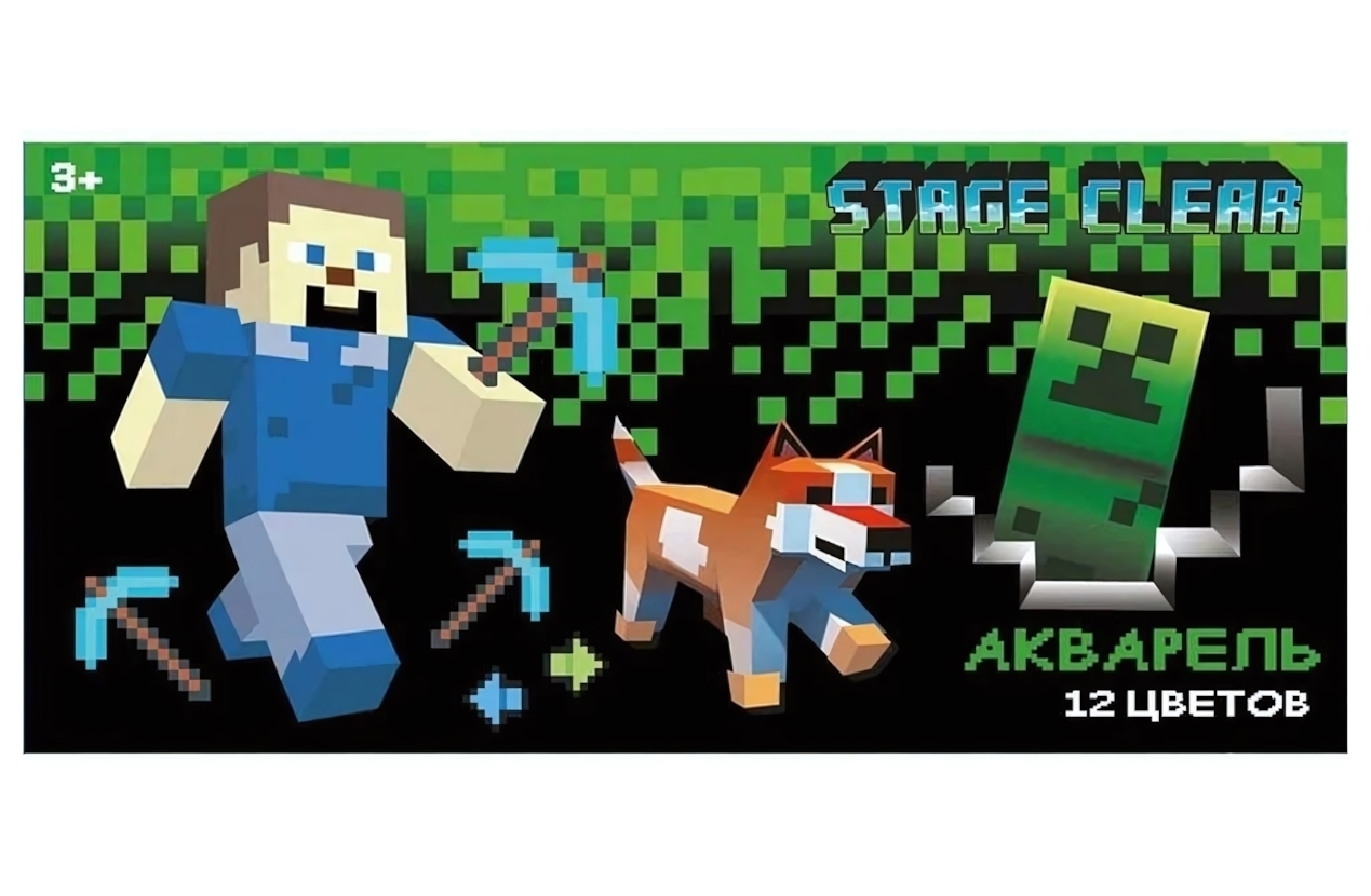 Краски поставляются в прочной картонной упаковке с европодвесом, что делает их удобными для хранения и транспортировки. Дизайн упаковки в стиле популярной пиксельной игры привлекает внимание юных художников.
