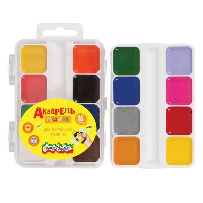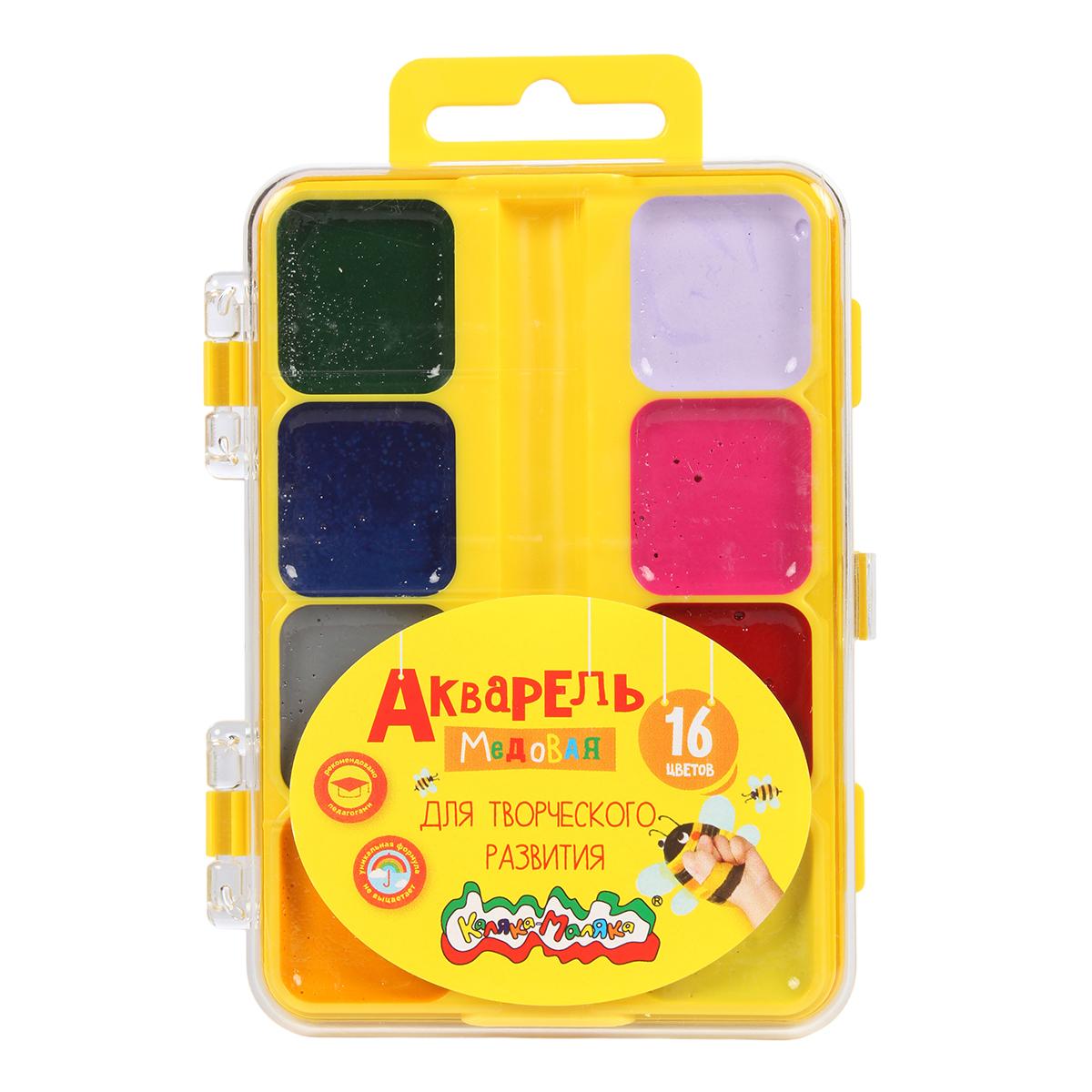 Акварель 'Каляка-маляка' медовая 16 цветов, пластик, для детей