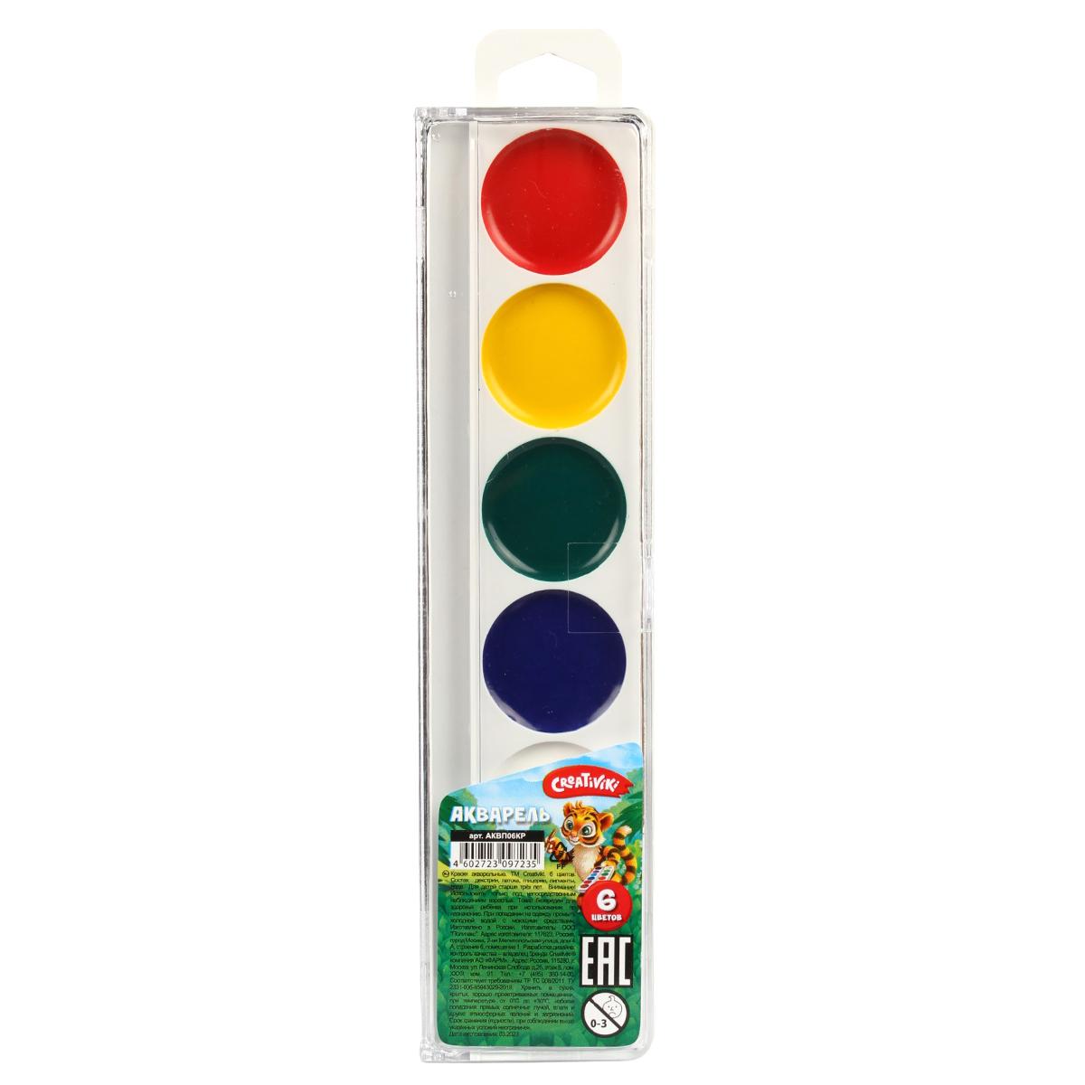 Акварель медовая Creativiki, 6 ярких цветов для детского творчества, пластиковый корпус