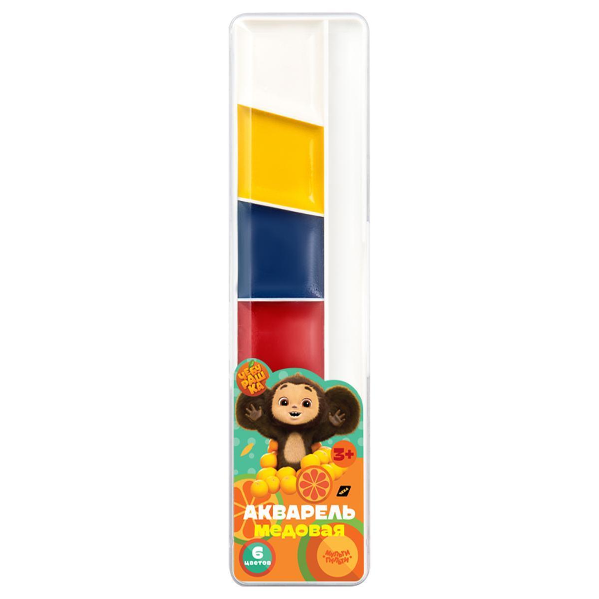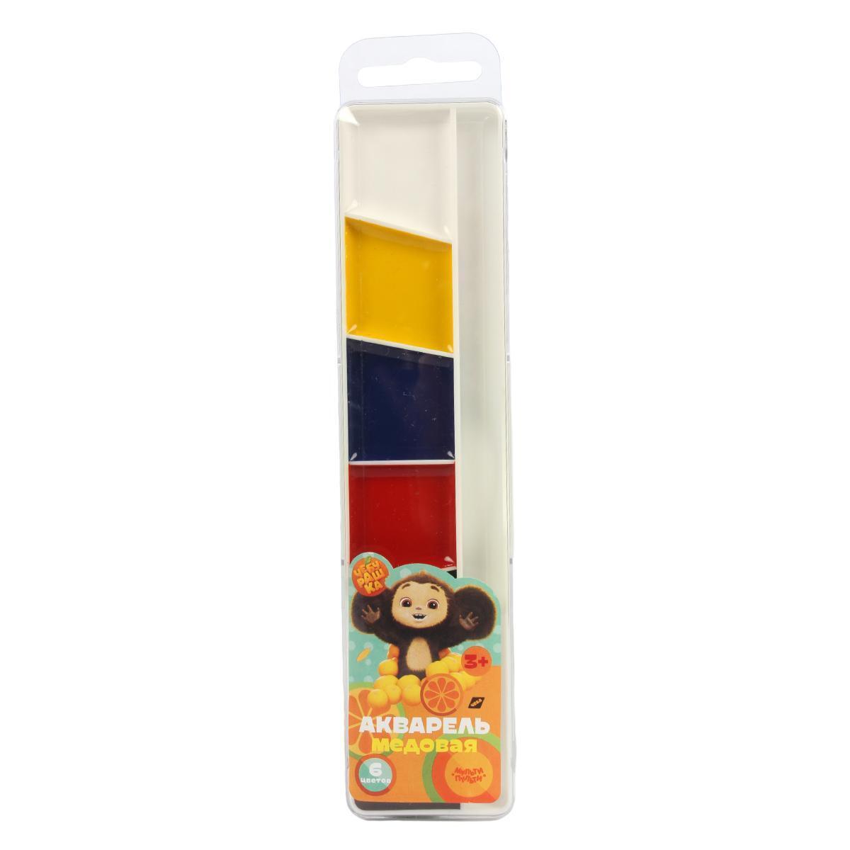 Акварель медовая "Чебурашка" 6 цветов, пластик, для детей 3+