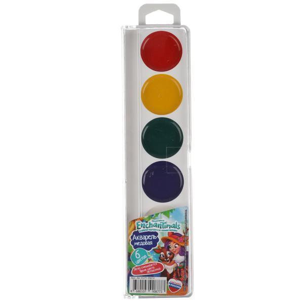 Акварель медовая «Enchantimals» 6 цветов, нетоксичная, безопасная, пластиковые контейнеры