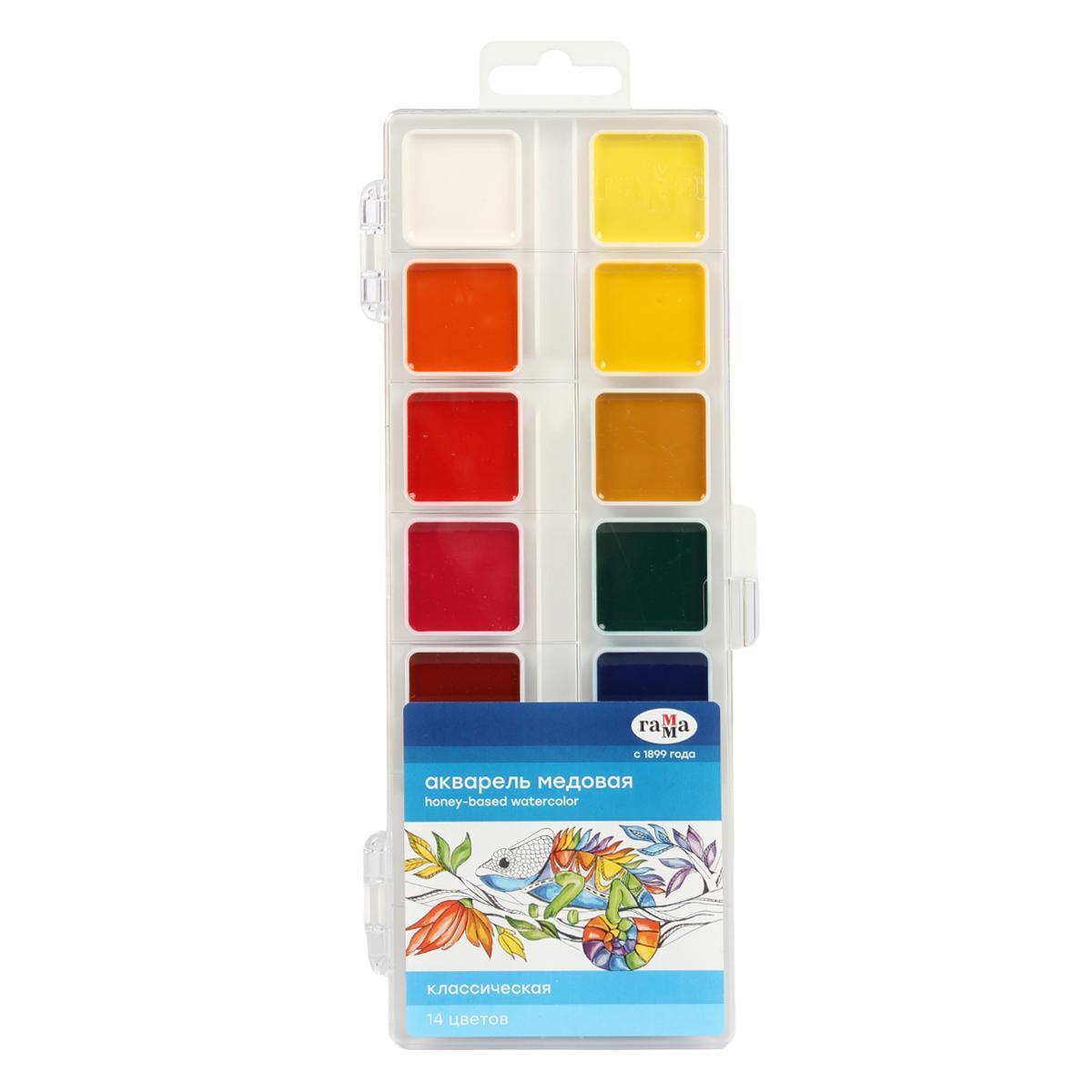 Акварель медовая Гамма "Классика", 14 цветов, яркие краски для творчества