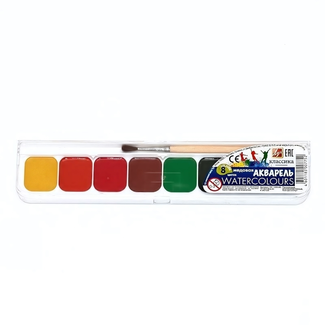 Акварель медовая «Классика» 8 цветов с кистью, пластиковый кейс, безопасная для творчества