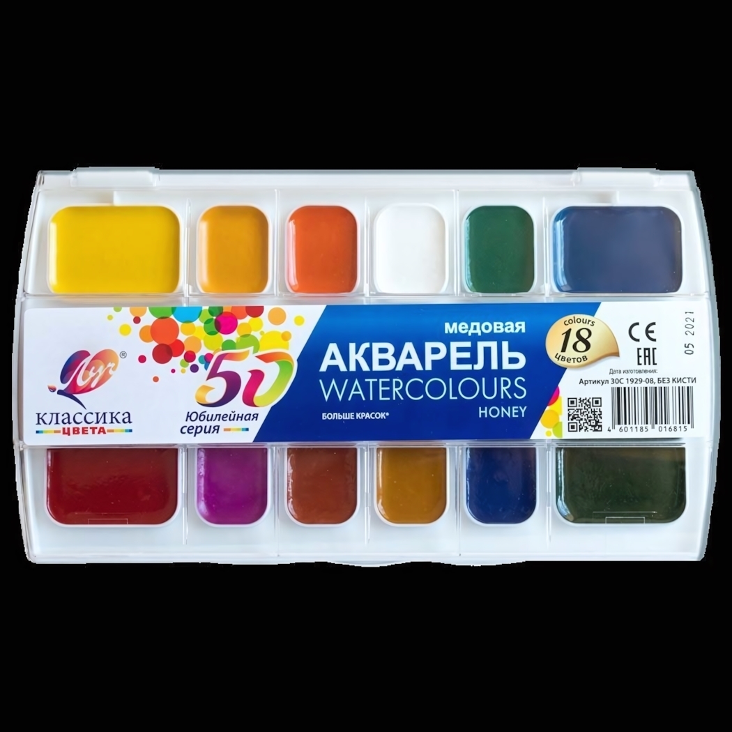 Акварель медовая «Классика Юбилейная» 18 цветов, пластиковый корпус, насыщенные оттенки