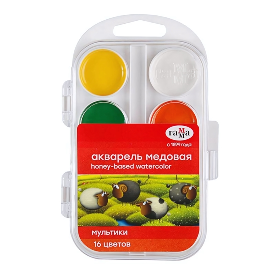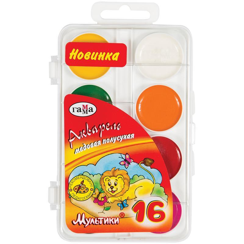 Акварель медовая «Мультики» 16 цветов, пластиковый пенал с палитрой, безопасная для детей