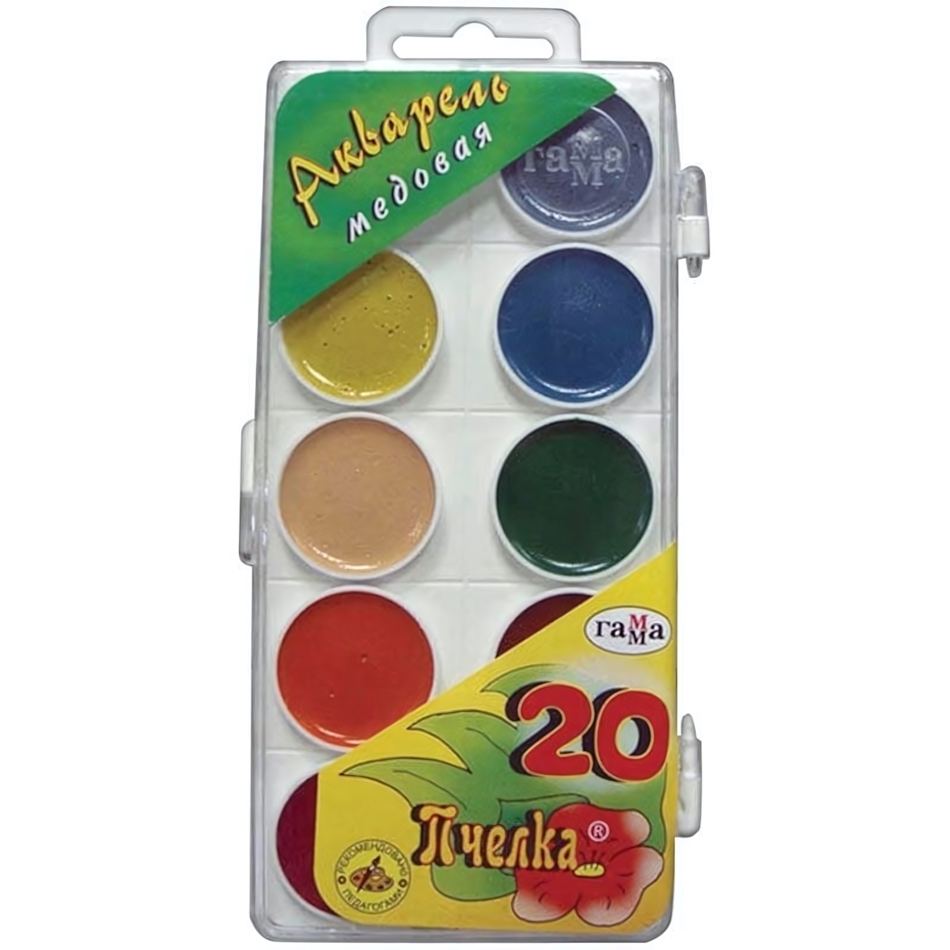 Акварель медовая "Пчелка" 20 цветов, пластиковый пенал, без кисти