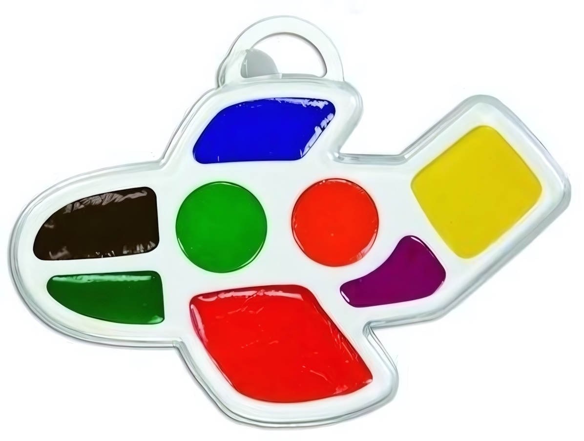Белая пластиковая основа с 8 секциями (синий, зелёный, оранжевый, красный, фиолетовый, жёлтый и два дополнительных оттенка) развивает цветовосприятие. Гладкая поверхность предотвращает расслаивание красок при высыхании. Рекомендована для детей от 3 лет — первый шаг в мир профессиональных художественных материалов!